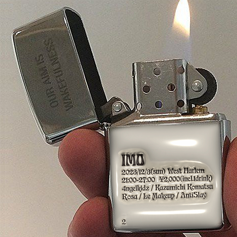 また12月3日(日)には、2月に東京・渋谷 Enter Shibuyaにて初回が行われた4ngelkidz主催パーティの第2回「IMO 2」を京都・木屋町 West Harlemにて開催。同公演には4ngelkidzに加え、AntiSlay、Kazumichi Komatsu、Le Makeup、Rosaの出演が予定されています。
