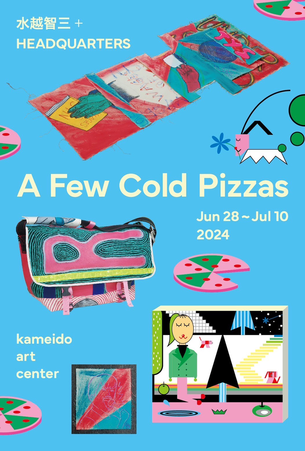 昨年は水越が個展「昼寝して虫歯生まれる」を「HEADQUARTERS」にて開催し、かねてより親交を深めてきた両者による「A Few Cold Pizzas」は、“友情”と“リスペクト”、そして“ピザ”がテーマ。各々の作品が展示されるほか、水越のイラストをフィーチャーした生地を用いてHEADQUARTERS制作したバッグ、ポーチ等のコラボレート・アイテムを販売。会場内にはバッジ、チェキ、コラボレート小物などが当たるカプセル自動販売機も設置されます。会期中は、「A Few Cold Pizzas」デザインをシルクスクリーンでプリントできるイベントも実施。