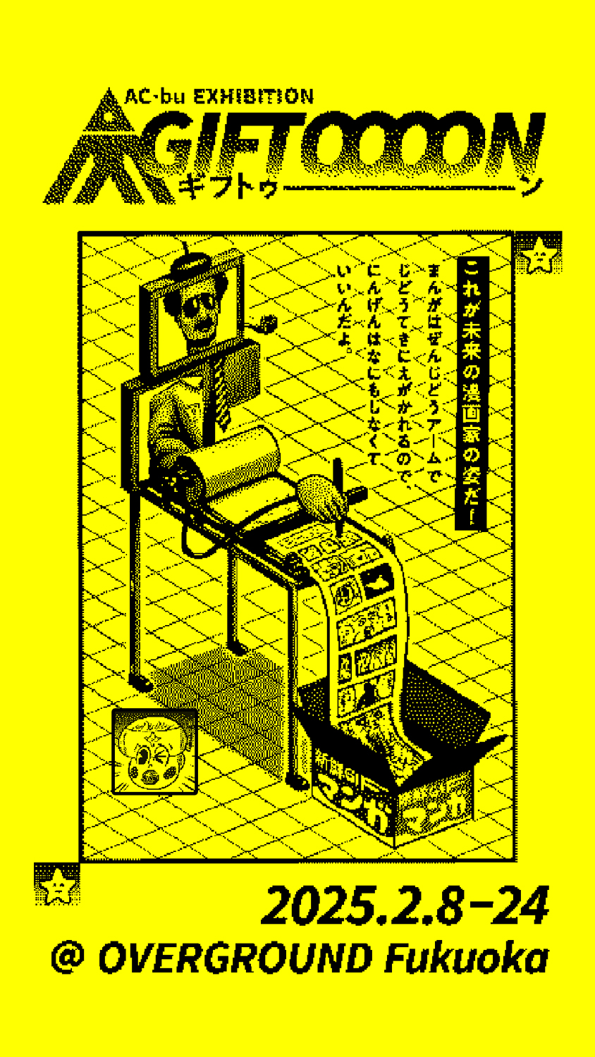 昨年12月から今年1月にかけてソロ・エキシビション「GIFTOOOON(ギフトゥーーン)」を東京・日本橋 三越本店 MITSUKOSHI CONTEMPORARY GALLERYにて開催したクリエイティヴ・チーム「AC部」が、同展の巡回展を福岡・OVERGROUNDにて2月8日(土)から24日(月・祝)まで開催。