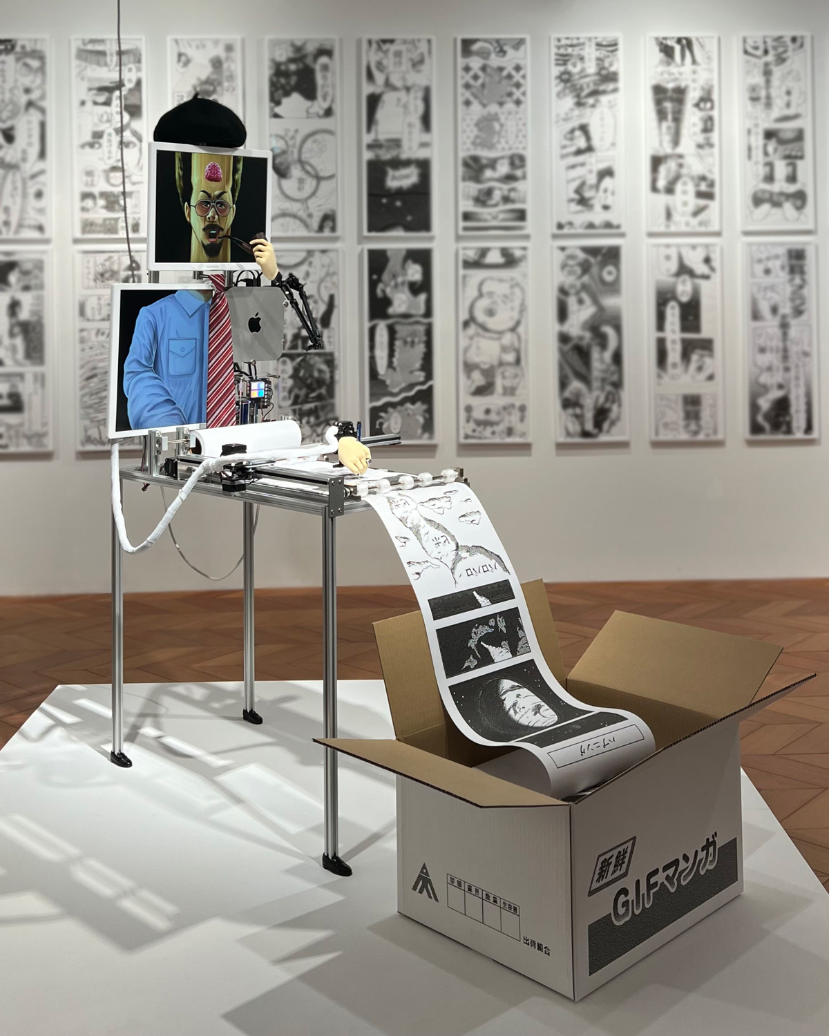 という意味が込められた同展では、AC部がディレクションを担当し、昨年「Berlin Music Video Awards」特別賞受賞、第11回「新千歳空港国際アニメーション映画祭」DNP大日本印刷賞受賞、「ACC TOKYO CREATIVITY AWARDS」デザイン部門ファイナリストに選出されたgroup_inou「HAPPENING」のMVや、ペンプロッターを用いてAC部のタッチで漫画を描画するインスタレーション作品「自動漫画家」、「GIFマンガ」をモチーフにしたキャンバス作品などを展示。同展のために制作したマーチャンダイズも販売されます。会期初日19:00からはオープニング・レセプションを実施。