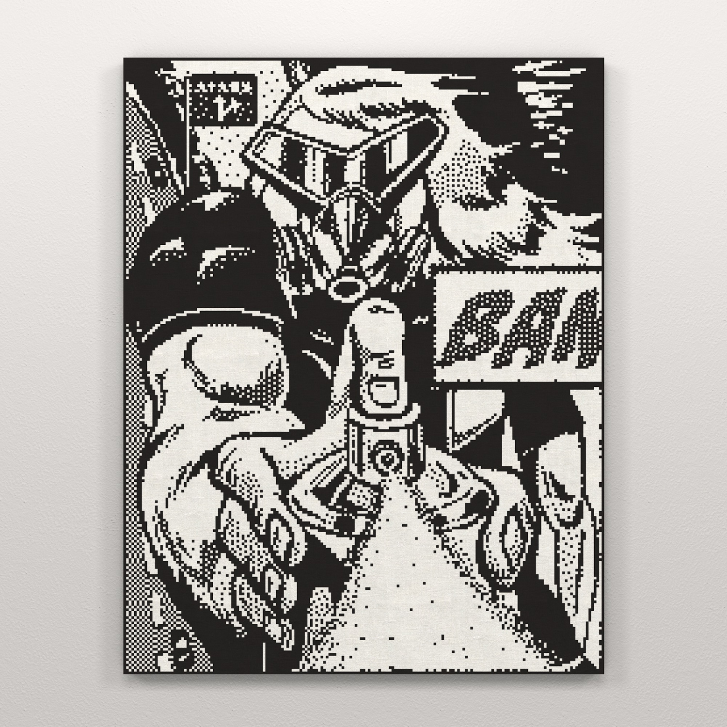 タイトルにGIFに変換されたグラフィックを現実世界へ再変換し、テクノロジーの恩恵(GIFT)を戯画化(TOOOON)