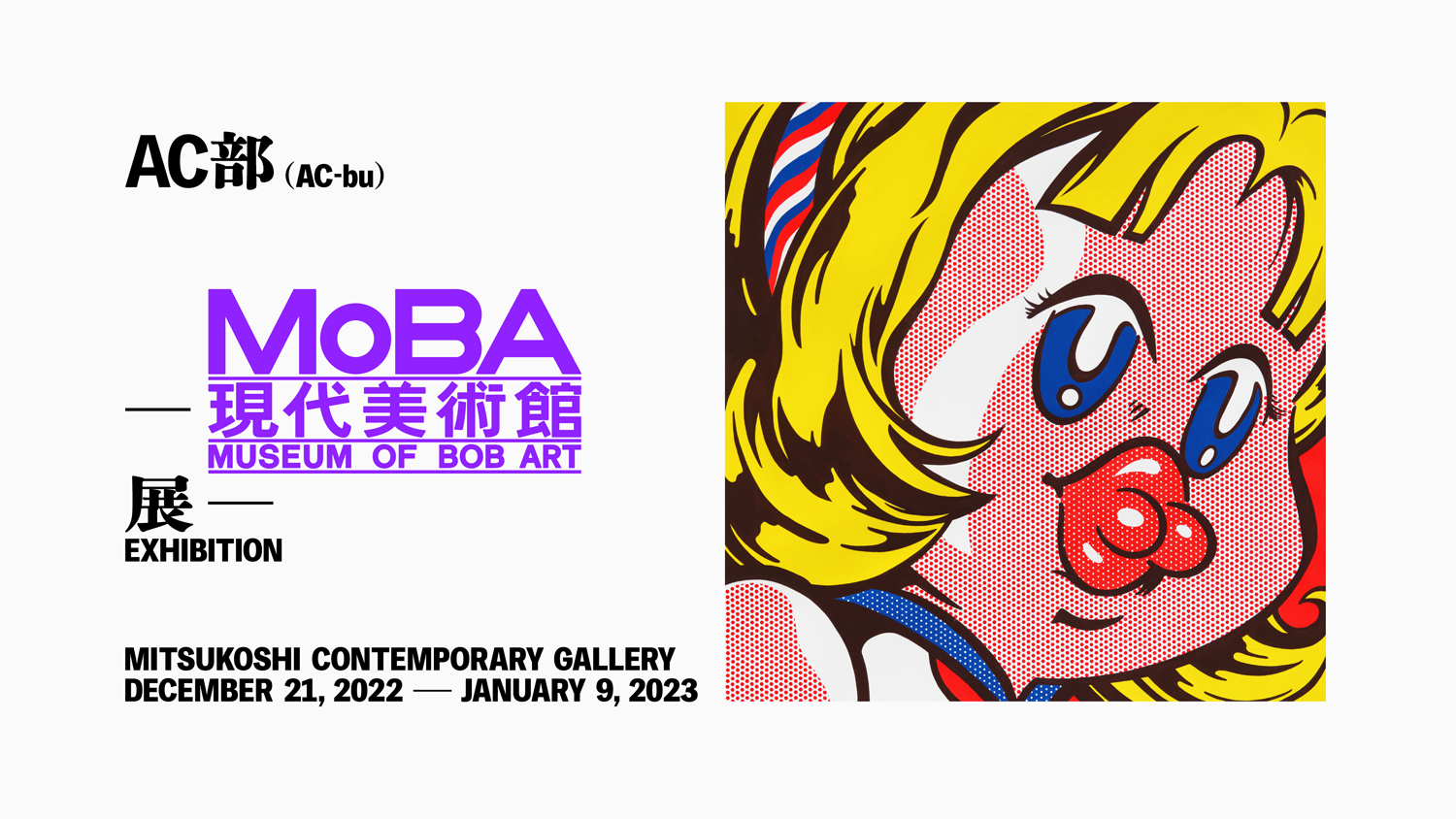 2月に個展「異和感ナイズ展」を東京・銀座 クリエイションギャラリーG8にて開催し好評を博したクリエイティヴ・チーム「AC部」が、ソロ・エキシビション「MoBA -現代美術館展- Museum of BOB ART EXHIBITION」を東京・日本橋 三越本店 MITSUKOSHI CONTEMPORARY GALLERYにて12月21日(水)から2023年1月9日(月・祝)まで開催。