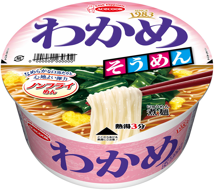 “わ~かめスキスキピチピチ~”の石立鉄男TVCMでおなじみ、「エースコック株式会社」のロングセラー・ブランド「わかめラーメン」から、煮麺『ノンフライ わかめそうめん』(193円 + 税)がリフトオフ。2月3日(月)より全国で販売が開始されます。