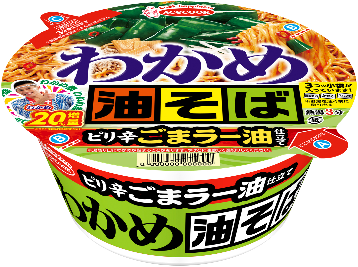 エースコックのロングセラー・ラーメン・ブランド「わかめラーメン」が、アイコニックな『わかめラーメン』を油そば化した汁なしエディション『わかめ油そば ピリ辛ごまラー油仕立て』(230円 + 税)を4月27日(月)に発売。
