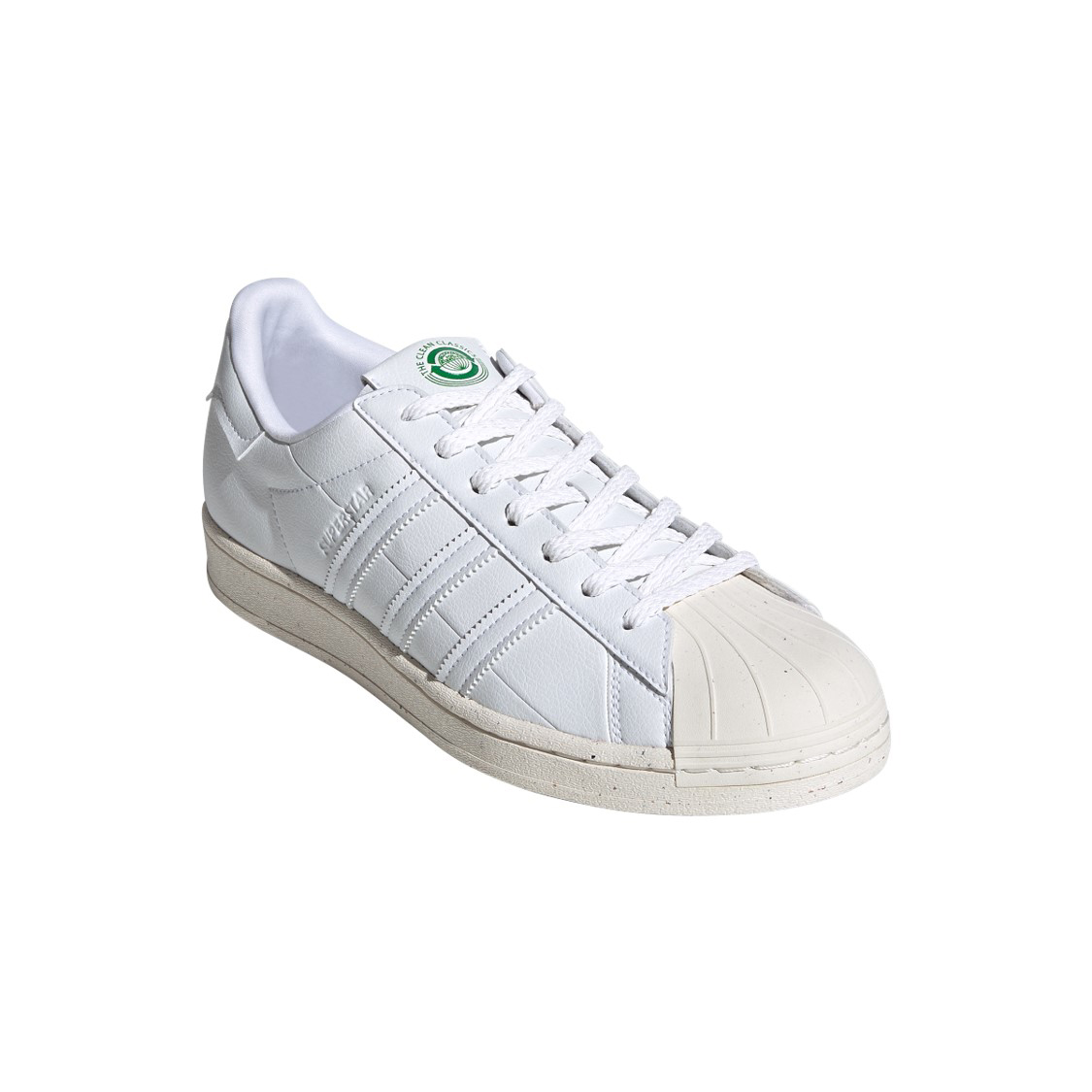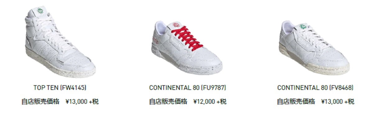 ヴィーガン認証を取得している同コレクションは、『SUPERSTAR』『STAN SMITH』『CONTINENTAL 80』などのクラシックスを、素材効率化のためのパターン再設計によってリサイクル素材70%以上のアッパー、ベター・ラバー(天然ラバー90% + リサイクル・ラバー10%)のアウトソールで実現したプロダクト。アッパー、ソックライナー・カヴァー、スティッチにはリサイクル・ポリエステル、レースにはFSC認証のリサイクル紙、インソールには天然コルクなど、各部で環境への負荷を抑えた素材が使用されています。