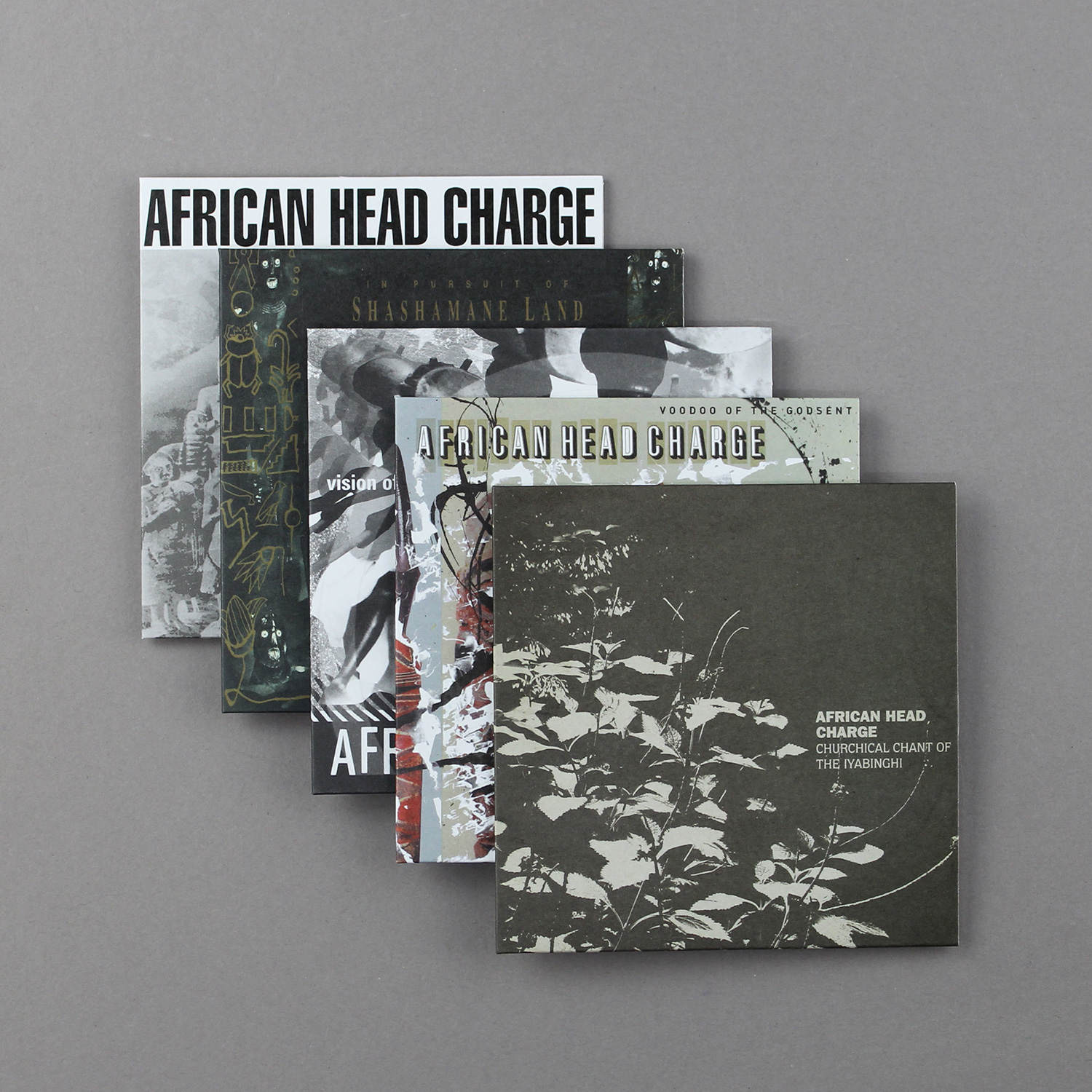5CDのボックスには、“後期”作品にあたる『Songs of Praise』(1990)、『In Pursuit of Shashamane Land』(1993)、『Vision of A Psychedelic Africa』(2005)、『Voodoo of the Godsent』(2011)の4タイトルがそれぞれレア・トラック追加のエクスパンデッド・エディションとして収められるほか、『Songs of Praise』『In Pursuit of Shashamane Land』制作時の未発表ヴァージョンをオリジナル・テープから起こした音源集『Churchical Chant of the Iyabinghi』もイン。90s AFRICAN HEAD CHARGEの決定版アイテムとなっています。