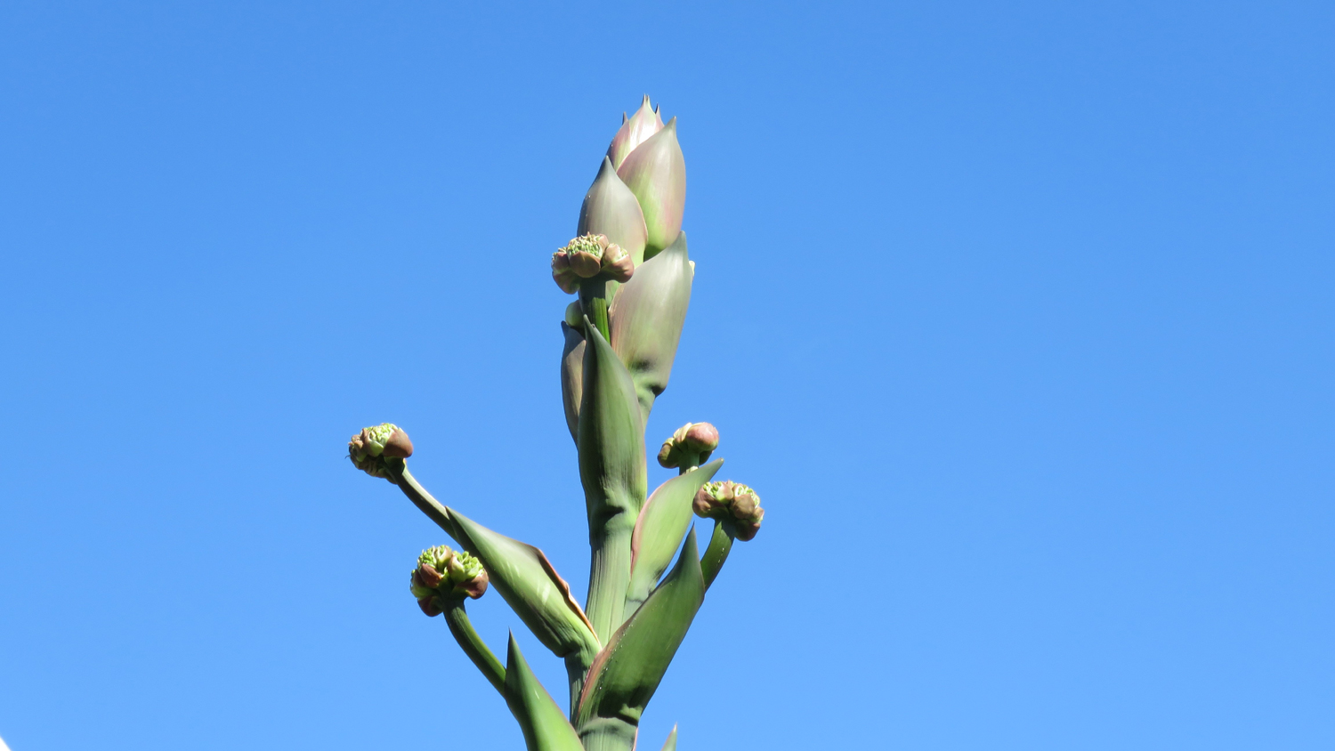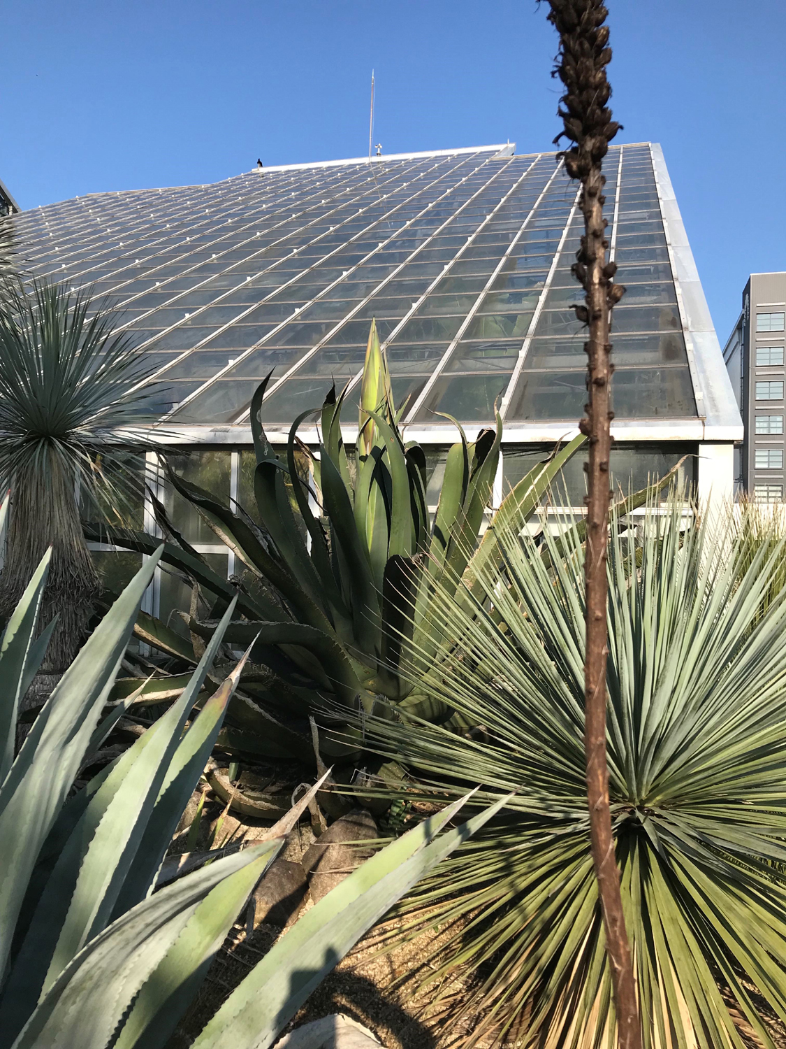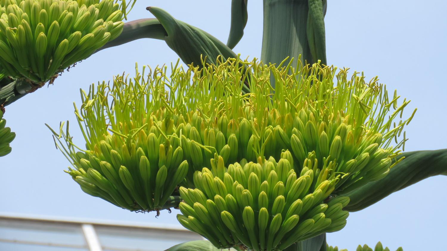 メキシコの乾燥地に自生し、現地では醸造酒・プルケの原料となるアガベ・サルミアナ・フェロクスは、株の直径が3mにもおよぶ巨大多肉植物。開花後に枯死するため、同株の観賞期間は近日に限定されます。