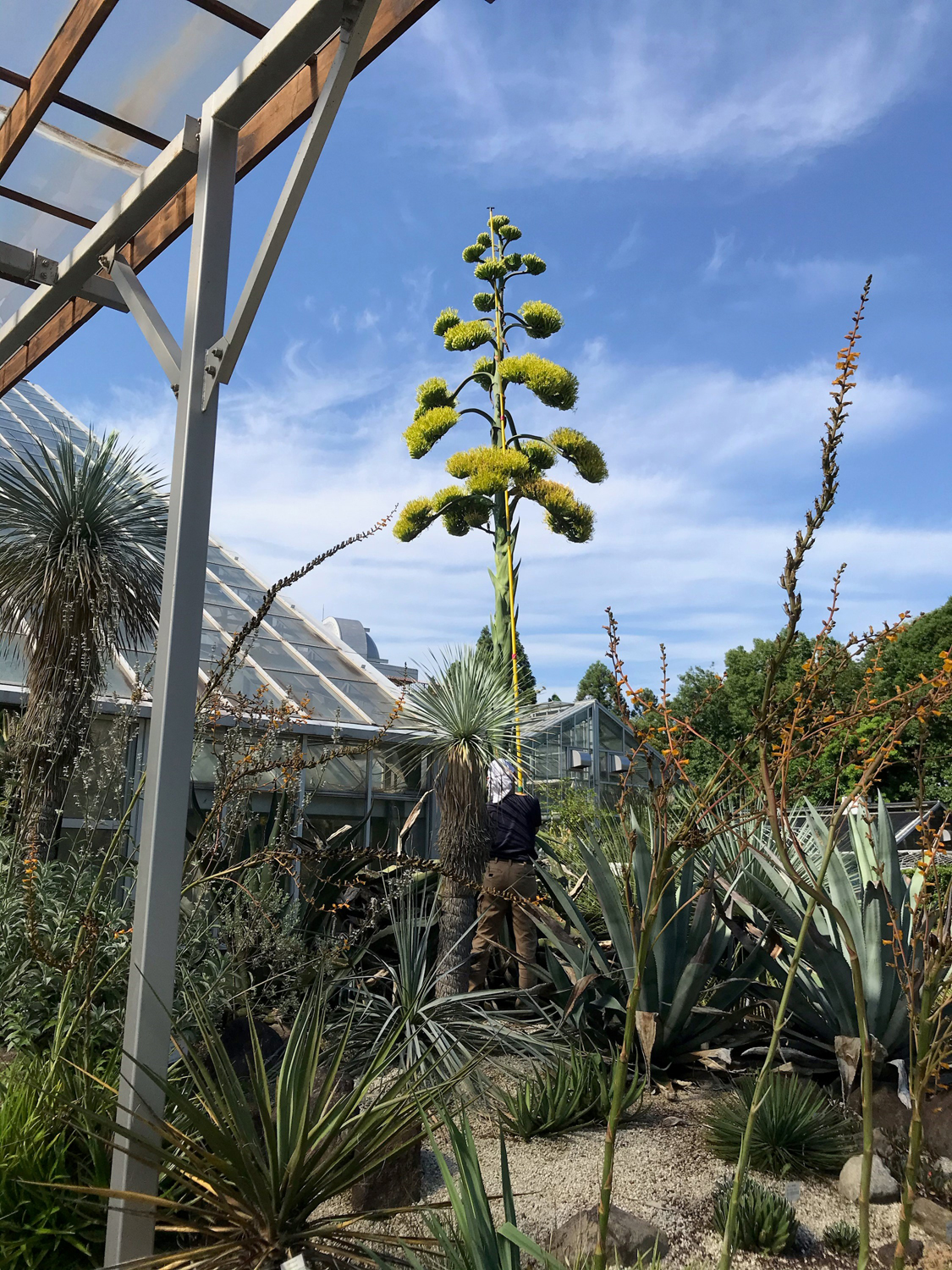 茨城・つくばの国立科学博物館 筑波実験植物園で1986年から育成され、昨年12月に花芽が確認されていたアガベ・サルミアナ・フェロクスが、34年目にして開花。花序は全高6.65mに達しているとのこと。同園は今月末頃までが見ごろと推測しています。