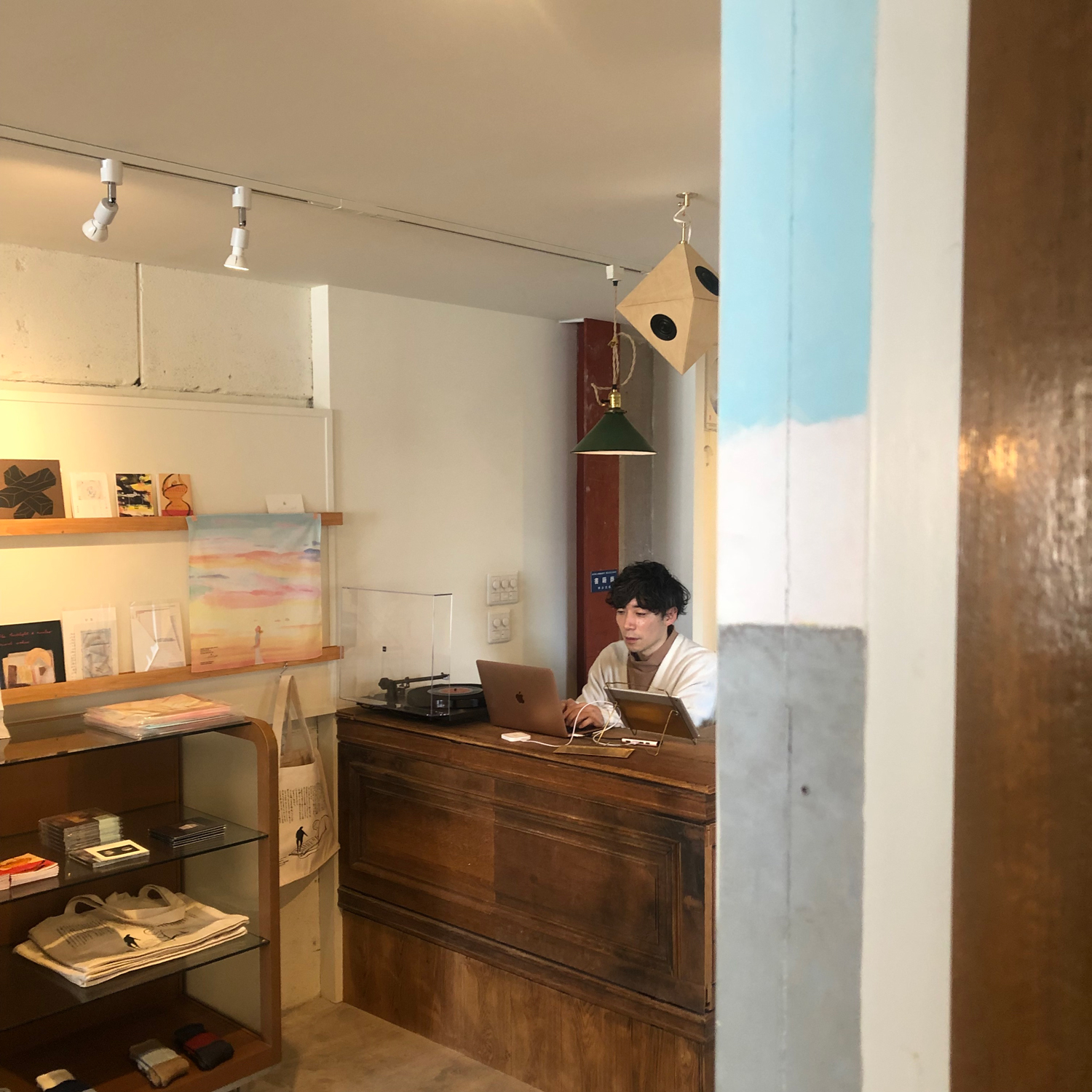 「twililight」ができるきっかけとなったのは、同店階下にあるカフェ「nicolas」を営む曽根雅典、由賀夫婦の声掛けだった。ミツくんとnicolasの繋がりはとても深く、nicolasでミツくんが夢見た多くの企画が実現したし、その逆も然りだ。それぞれ2011年という同タイミングで活動を始めたこともあり、お互いに深い感情を持っているのではないかと私は思っている。そんな曽根夫妻から昨年11月に、同ビルの3階と屋上のある4階が空いたと、愛知県豊田市在住のミツくんに連絡があった。「自分たちの店の上に、イベント・スペースを開くのはどうだろう?」という提案だったけれど、ミツくんはそれよりももっと身近で日常的でみんなが通えるお店にできたらと考え、本屋とギャラリーとカフェが一緒になったお店を思いついたのだそうだ。経験はないけれど、大好きなその3つをお客さん視点で作れないか。ミツくんは自分を全部中途半端な人間だと語っていて、逆にそれが全部を組み込むことに合っているんじゃないか、どれもプロじゃないからこそ詰め込んで表現できないか、と考えたらしい。そんな自分のやることが、誰かの希望になるかもしれないと想いを巡らせ、愛知の家を引き払って東京の地で新たな挑戦をすることを決断した。