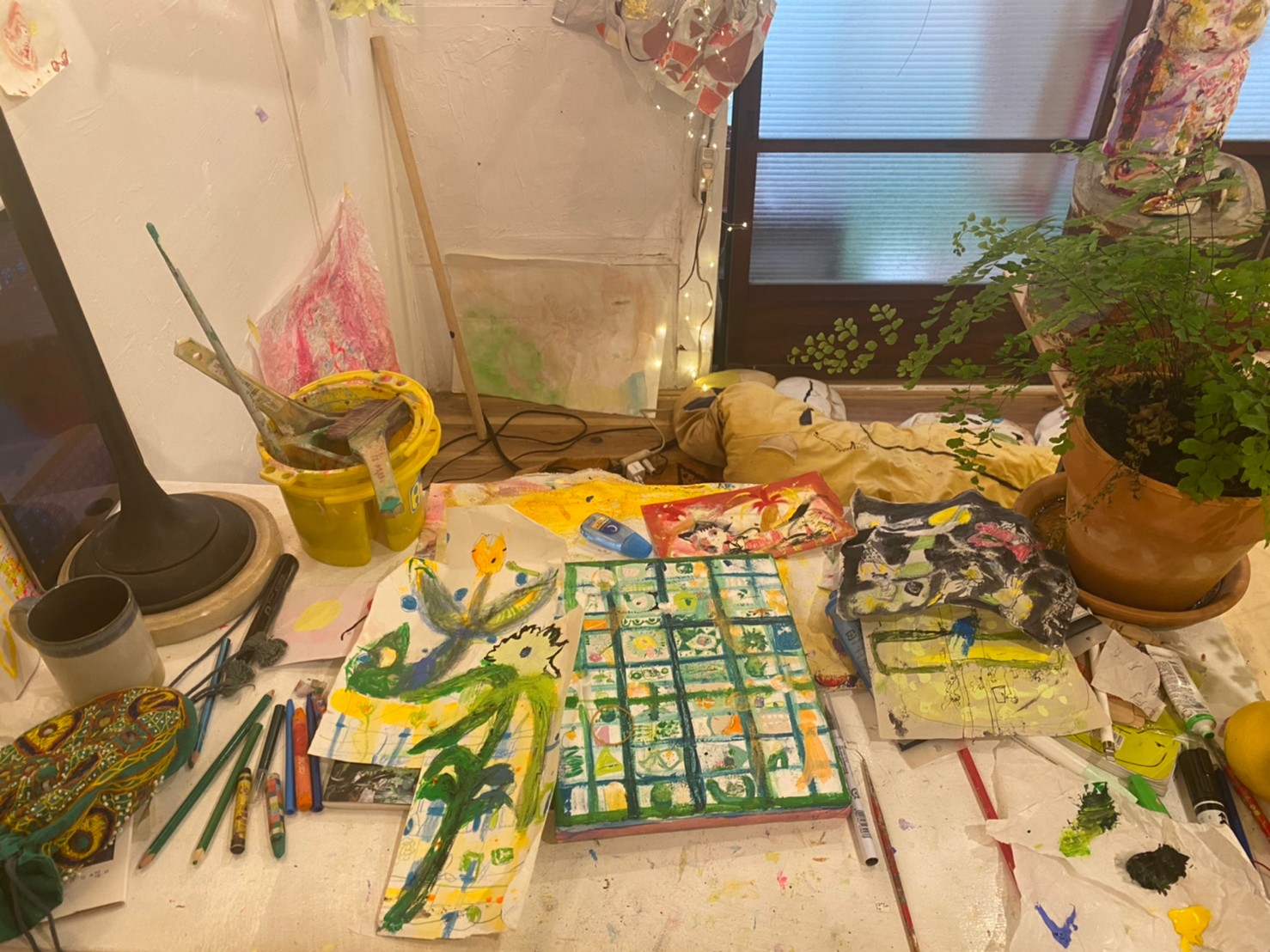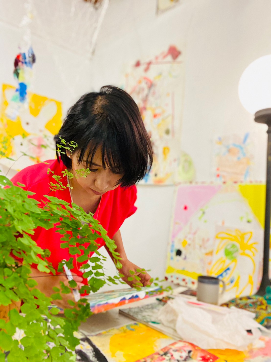 桜子ちゃんは村上 隆主催の現代美術の祭典「GEISAI #5」(2004)で金賞を受賞し、美術出版社主催「みづゑ賞」(2005)絵本部門で大賞を受賞。大阪・中之島 国立国際美術館や東京・清澄白河 東京都現代美術館などでの展示や、オークションにも出品する現代アーティストだ。子育てのため数年間は絵を描くことをお休みしていたものの、2020年より自分のペースでゆっくりと制作を始めている。