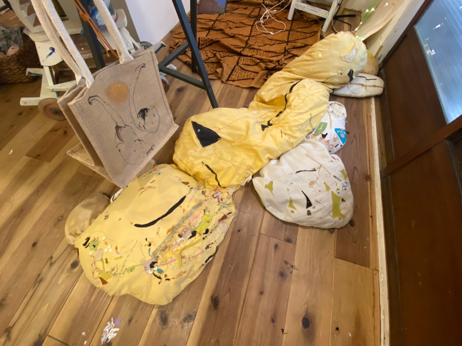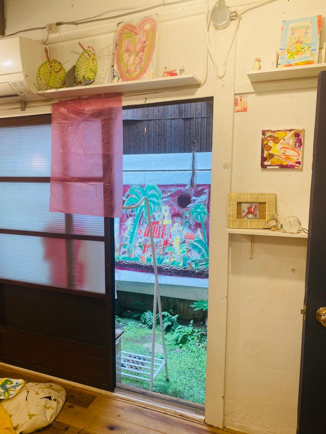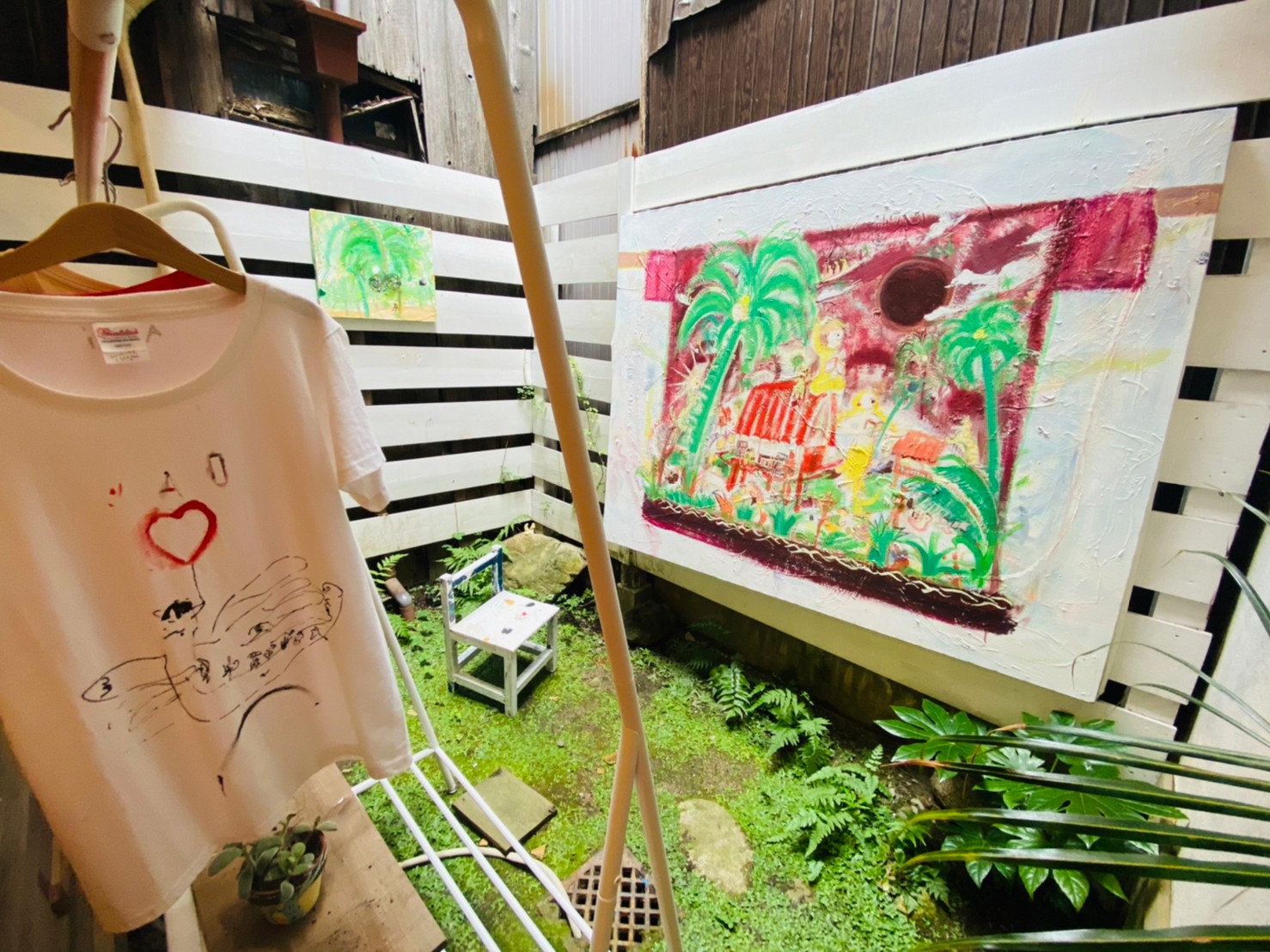 お店では、“家族で記念撮影をするみたいに似顔絵を描いて残したいかた”に向けた「にがおえ」、“ちいさなお子さん用おえかきクラブ”「ゆこゆこ」も開催している。お庭があって、そこにも大きな絵が飾られている。手描きTシャツも買えて、ワークショップやライヴも随時開催。本当に見応えのあるスペシャルな空間で、今の時代に大事な、みんなが集まる文化センターという感じがする。