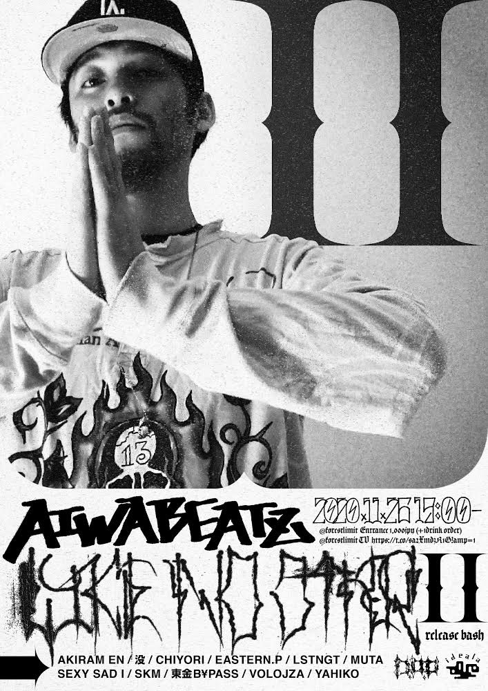 同作には、前作にも参加しているEASTERN.P、MUTA(JUMANJI)、SEKIS & DIKE、東金B¥PASS(aadaad a.k.a. Df¥ + SOSTONE)、VOLOJZA(VLUTENT RECORDS)、YAHIKO(1982s)に加え、独自のエキシビション・スタイル“鋭標(えいひょう)”での作品発表を続ける写真家・天野裕氏がポエトリー・リーディングで参加するほか、Dos Monosから没、リーダーバンド“CHIYORI with LOSTRAINS”での活動も好評のCHIYORI、9月に最新作『AQUARIAN AGE -Conversation Piece vol.3-』をリリースしたばかりのLSTNGT、ギタリストとして在籍するpreparationsetでのアルバム発表が待たれるSEXY SAD I、過去にもAIWABEATZとコラボレートしている岡山のSKM、茨城・つくば Club OctBaSSの店長としても知られるSPRA、2月に最新EP『幻想区域』を発表したYAMAANをフィーチャー。前作比ヴォリューム増の13曲が収録されています。