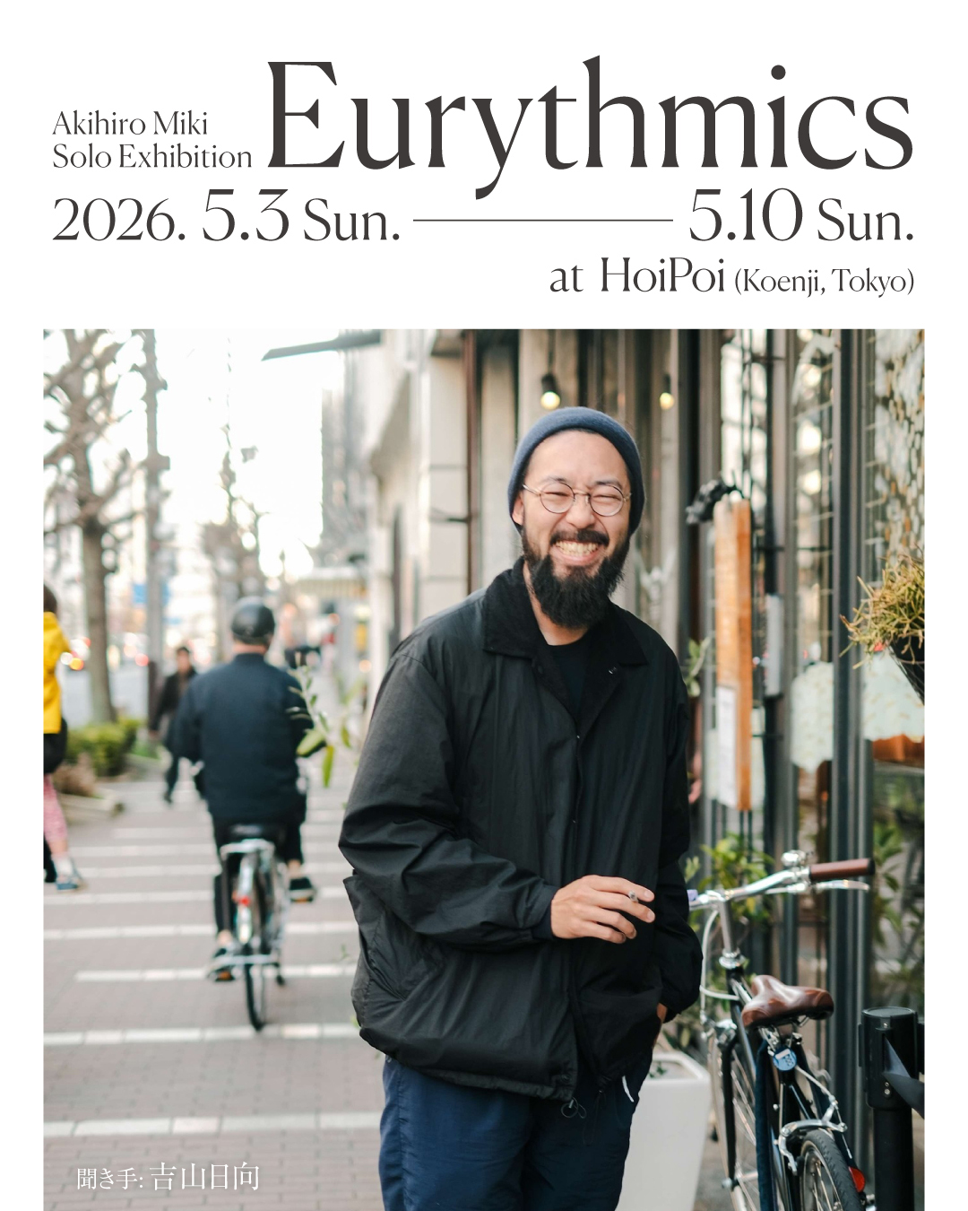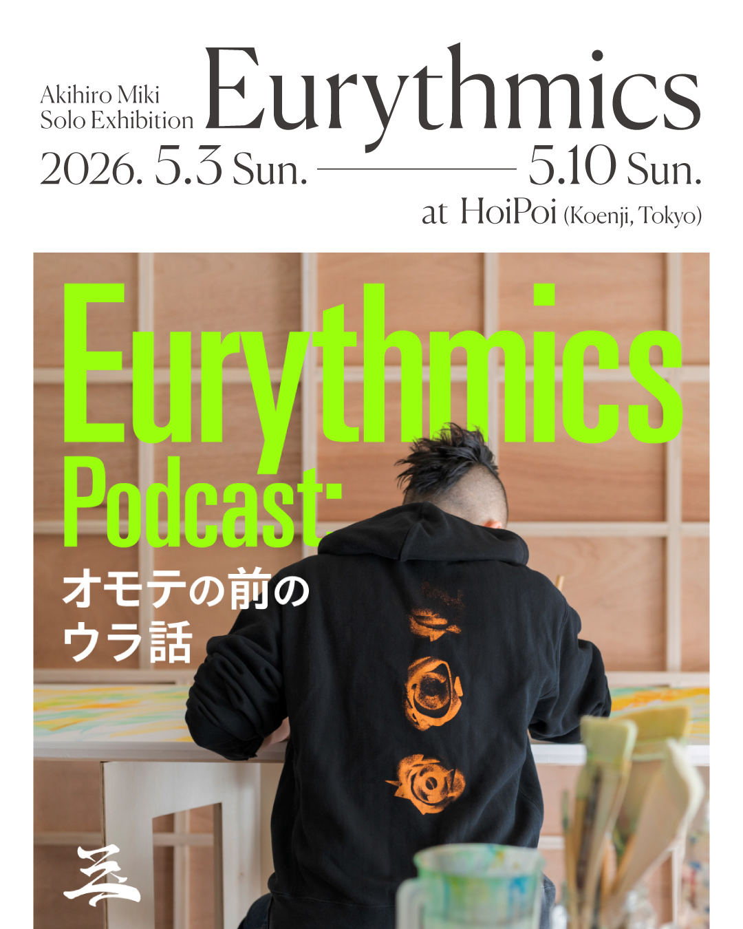 個展の開催に向けて、三木と編集者の吉山日向が出演するインタビュー形式のポッドキャスト「Eurythmics Podcast オモテの前のウラ話」を4月10日より5話限定で毎週金曜日に配信。会期中の5日(火・祝)には、両者が出演するトーク・イベントも同地にて開催されます。DJとして増田 薫(思い出野郎Aチーム)、エアロ亭スミスも出演し、飯本貴子がフードを提供。
