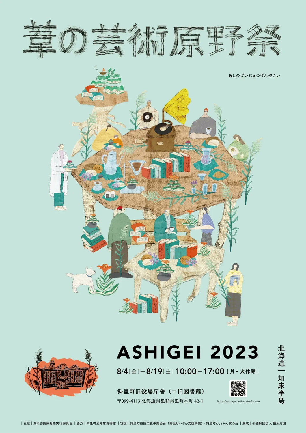 昨年に続き3度目の開催となる「あしげい」は、オホーツク海にそびえる知床半島の麓、斜里町旧役場庁舎(旧図書館)を舞台とし、地域の人と記憶が行き交う「参加型プロジェクト」、音と身体表現による「パフォーマンス」、多領域の表現者からなる「作品展示」を一体的に展開することで、地域文化の再発見と新たな価値の創出を目指すアートプロジェクトです。