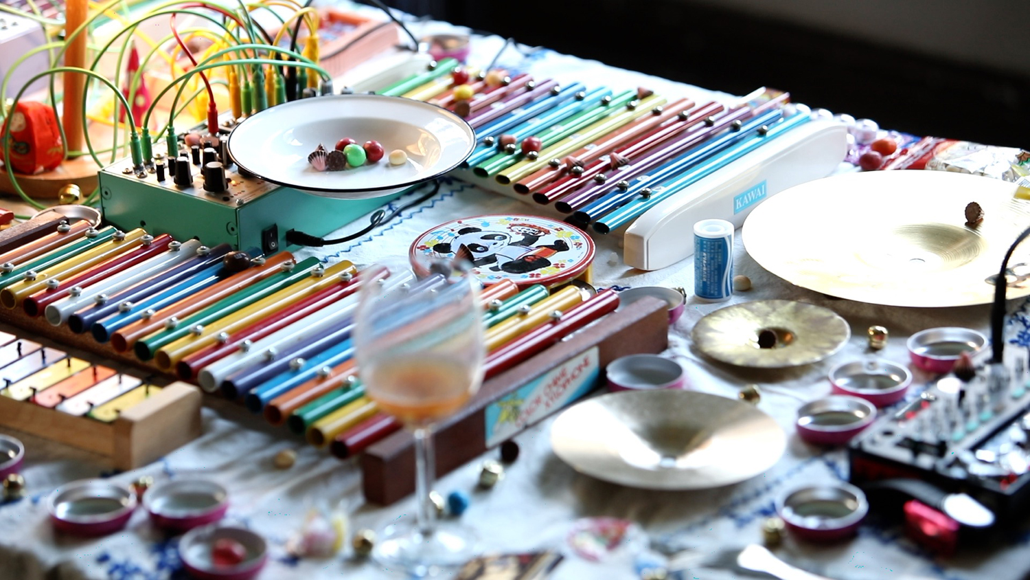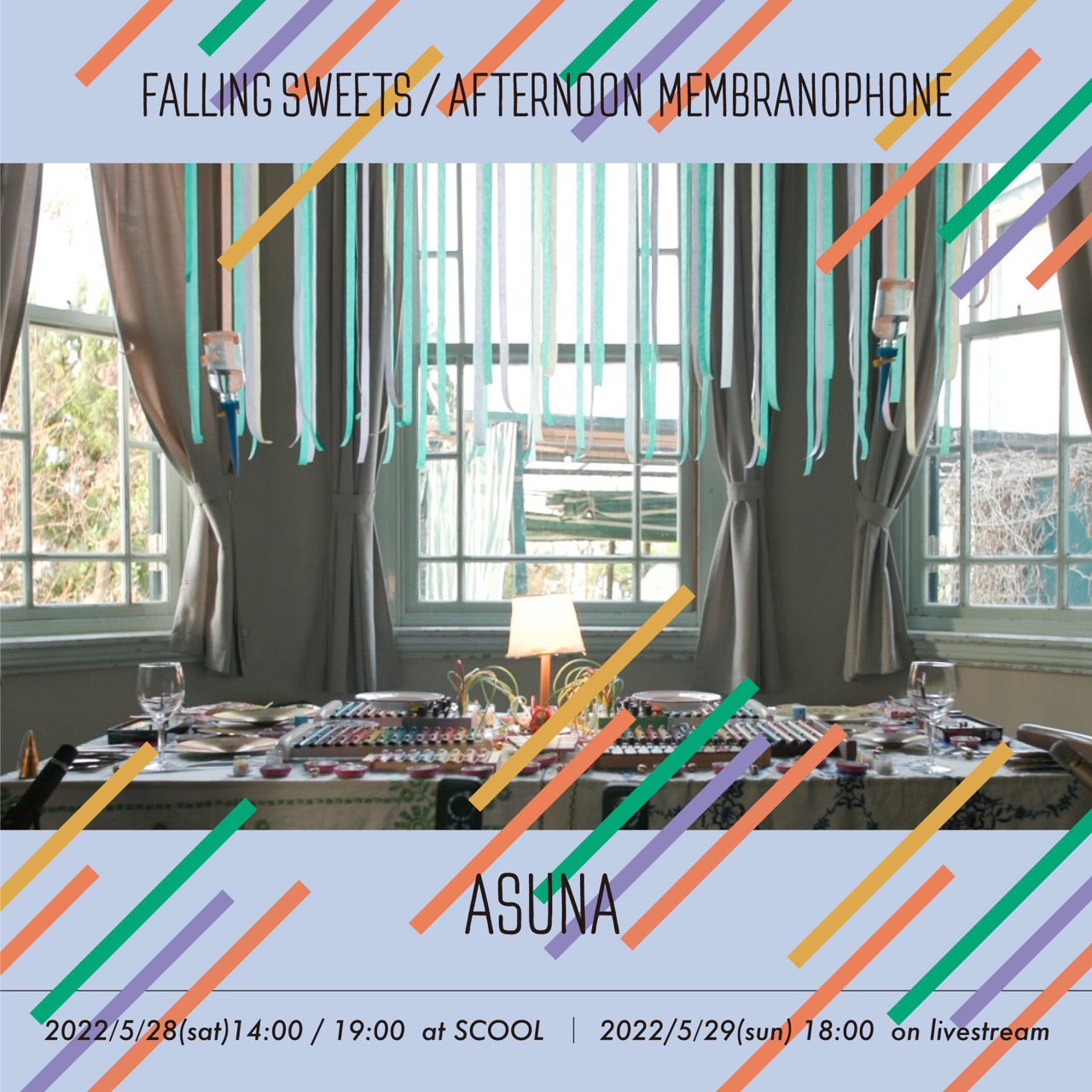 同公演では、食器類を電子楽器やトイ・インストゥルメントに置換した食卓モチーフのシアトリカルなパフォーマンス「Falling Sweets (Chocolate, Candy & Drops)」「Afternoon Membranophone」を上演。“食事相手”には、ASUNA主宰レーベル「aotoao」より3″CD、カセットテープ作品を発表し、2019年発表の2ndアルバム『Sing-Song』(flau)も好評を博している加藤りま(Family Basik)を迎えます。なお「Afternoon Membranophone」は今回が初演。開催に先駆け、昨春にseizo(淸造理英子 | 三田村管打団?, 音遊びの会, ぺドグ, sumahama?, KONCOS ほか)と共に行った「Falling Sweets (Chocolate, Candy & Drops)」の模様が公開されています。