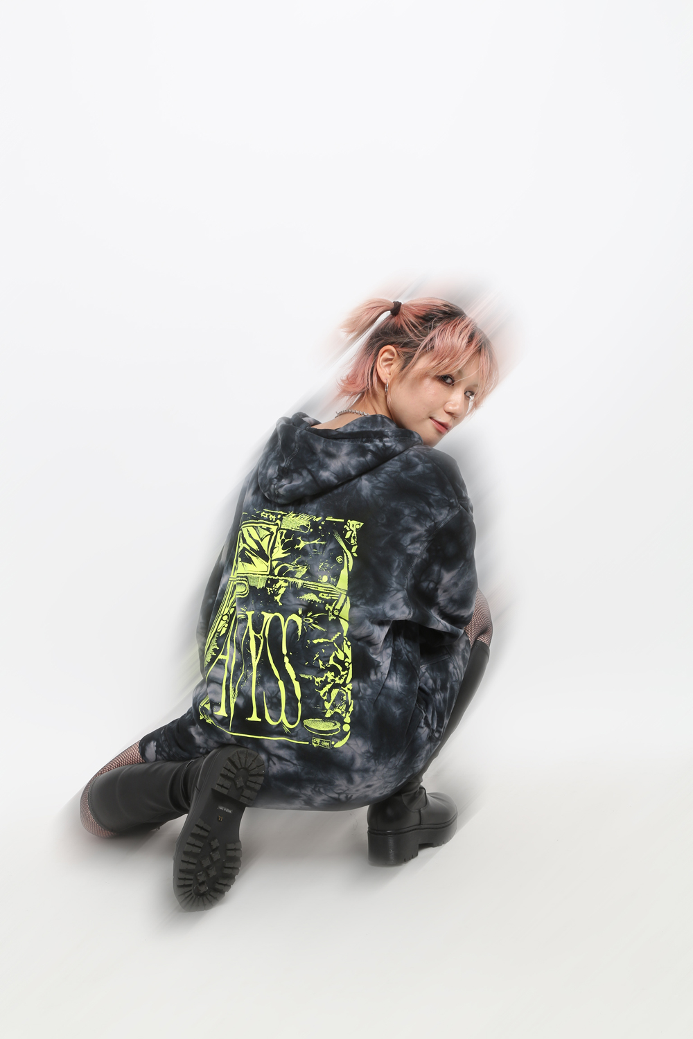 またコミュニティ内では、オリジナルのアパレル・ラインとしてDaiki MiyamaとJesse Osborne-Lanthierのデザインを落とし込んだTシャツとフーディを近日発売予定。販売開始に先駆け、Hana Watanabe(tamanaramen)が撮影とディレクションを務めたルックが公開されています。モデルには、3月に1st EP『PISS』を発表して注目を浴びたYoyouと、ライターとして活躍するyukinoiseをフィーチャー。
