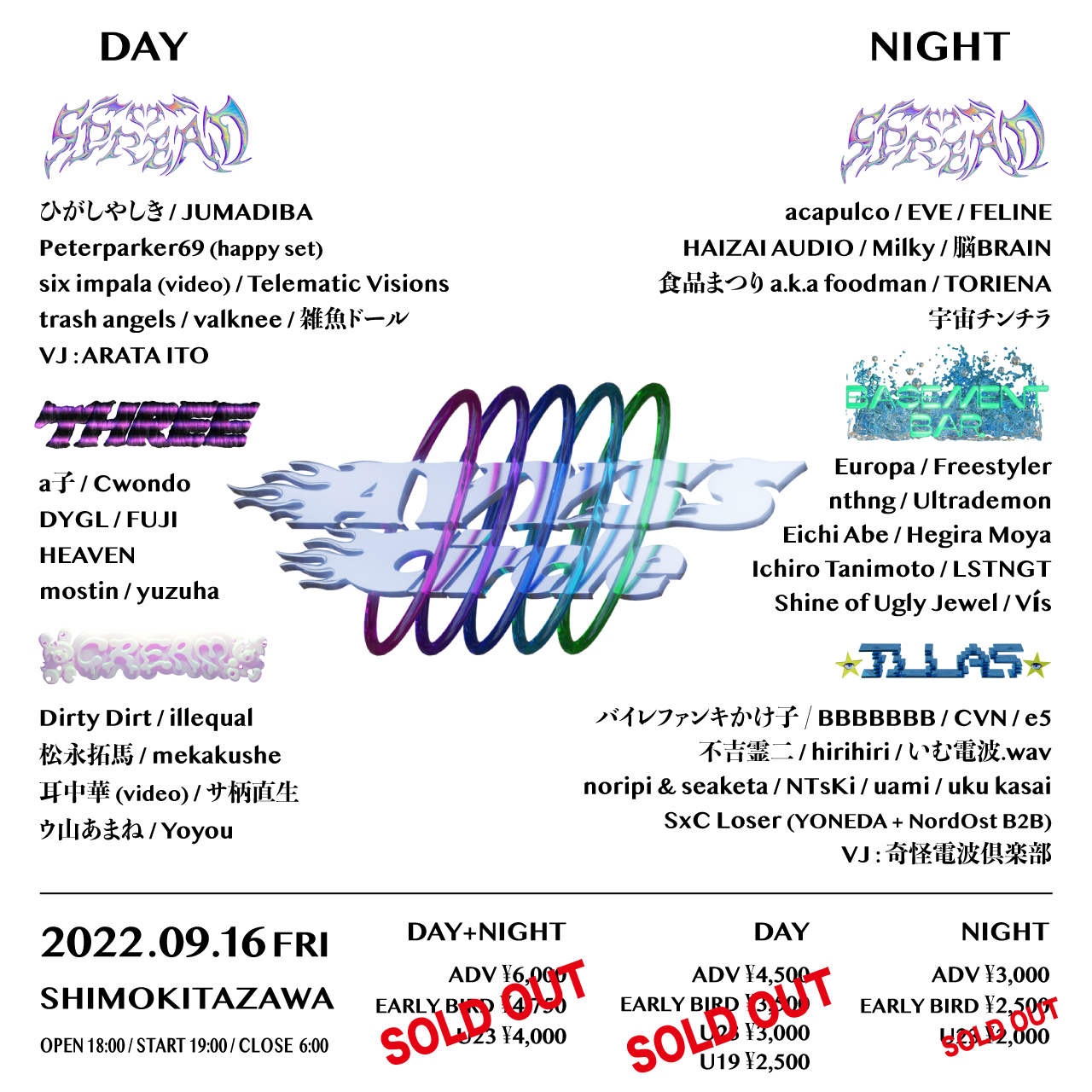 東京 下北沢 BASEMENTBAR / CREAM / ILLAS / SPREAD / THREE
