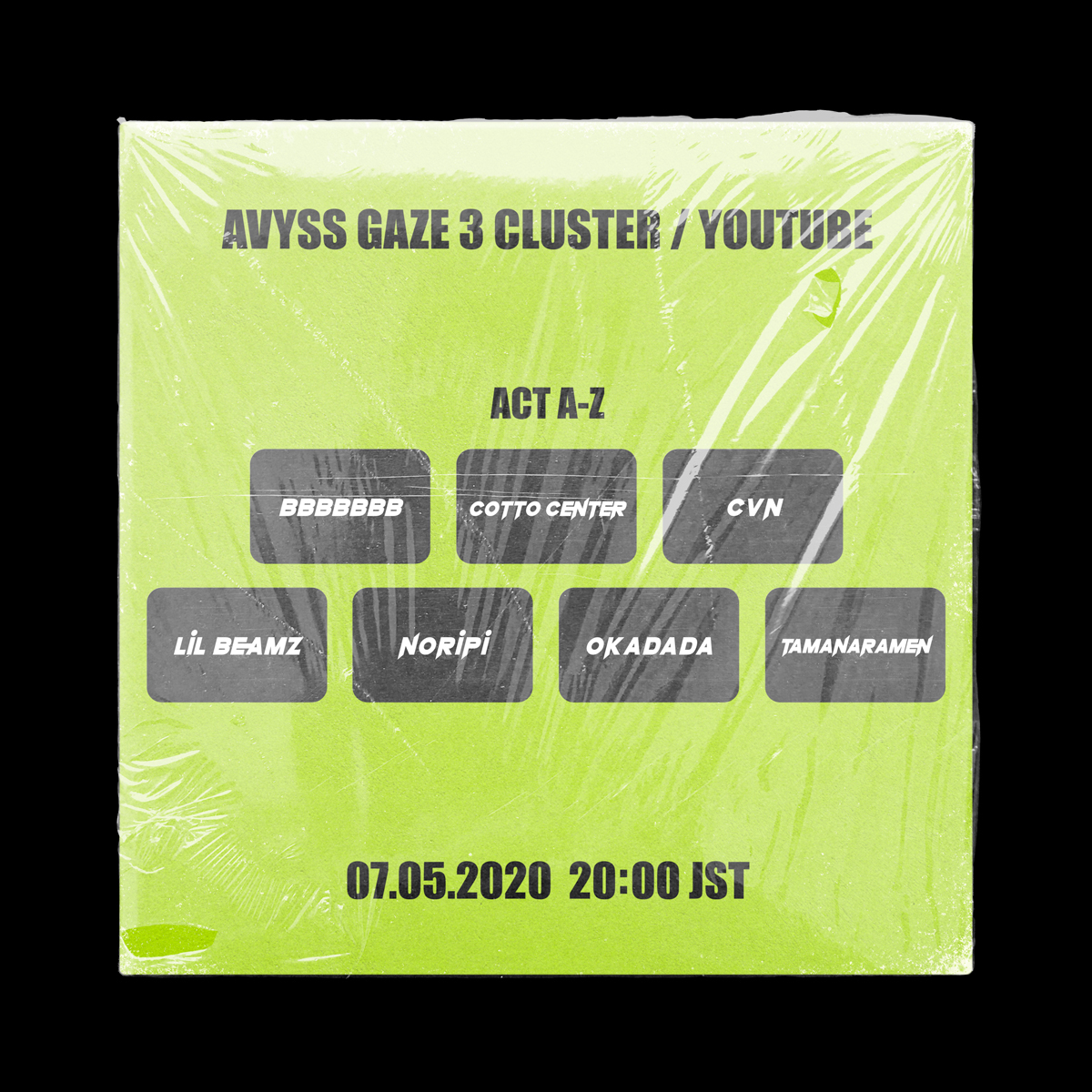 5月にACE COOL、Keanu Reeves、Le Makeup、LIL MOFO、stei、VVXXII + 011668 + S280F、yuzuha出演の“vol.2”を開催した仮想世界ライヴ配信プログラム「AVYSS GAZE」が、“vol.3”を7月5日(日)にYouTubeおよびclusterにて開催。オンライン・ストアでは、早割チケット(900円 | Tシャツ付き 4,200円)の販売が開始されています。