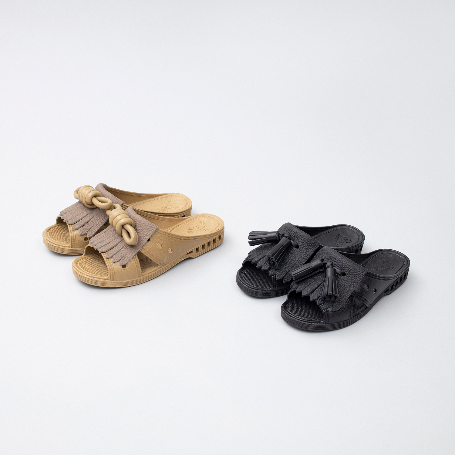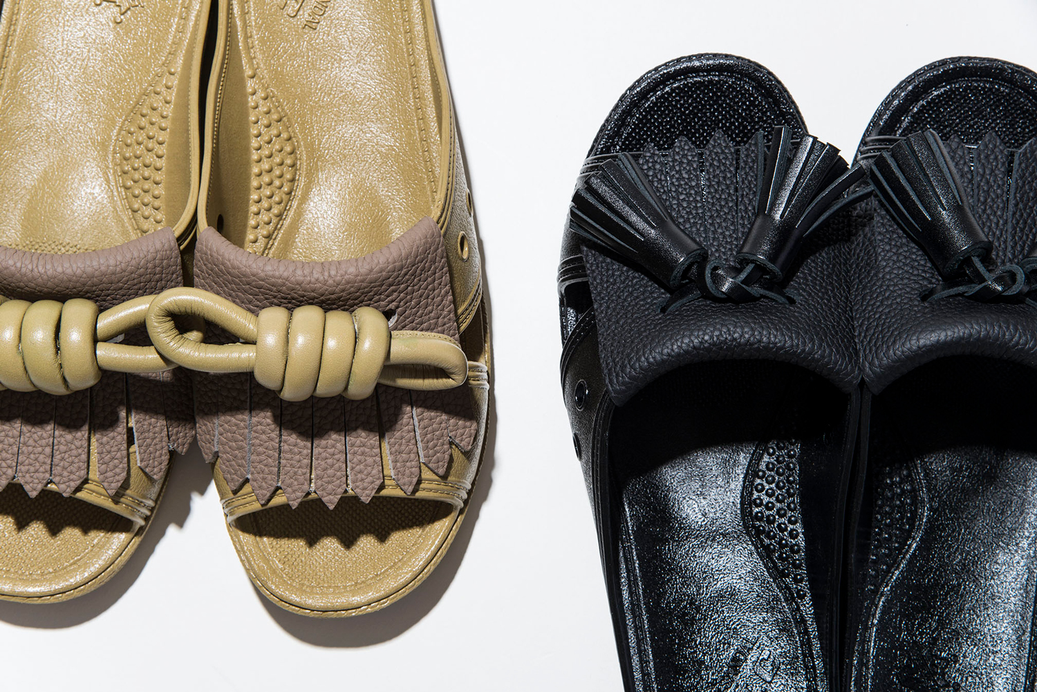 「bench」の定番モデルをベースに、革小物やバッグを中心に展開するITTIとコラボレートした同サンダルは、ITTIの代名詞であるキルト部分にドイツの老舗タンナー「PERLINGER」社の代表的な皮革「シュランケンカーフ」を採用。牛革部分はタッセルとノットの2型展開。牛革とのコンビネーションによる素材感の違いが特徴となっています。カラーはブラックとトープの2色。ユニセックスで履けるSから3Lまでの幅広いサイズが用意されています。
