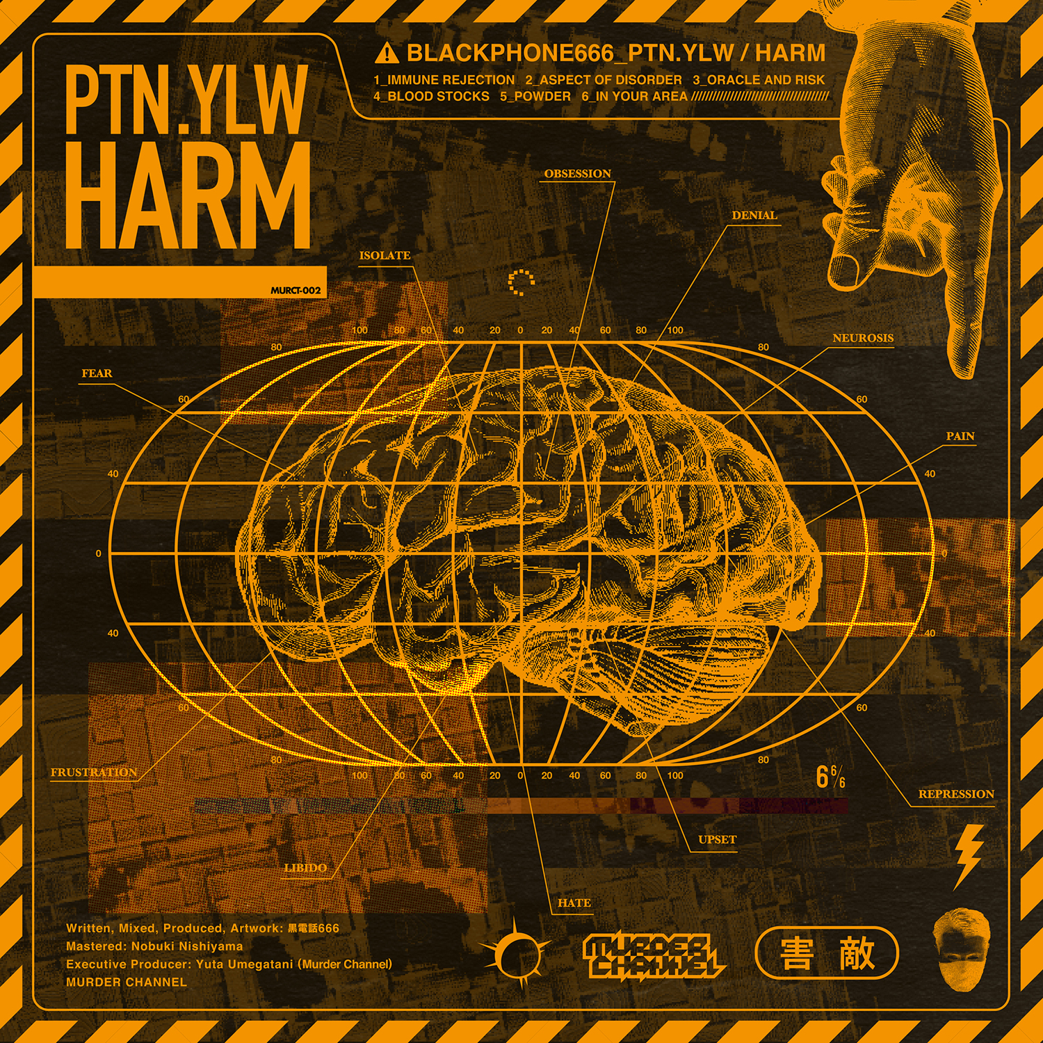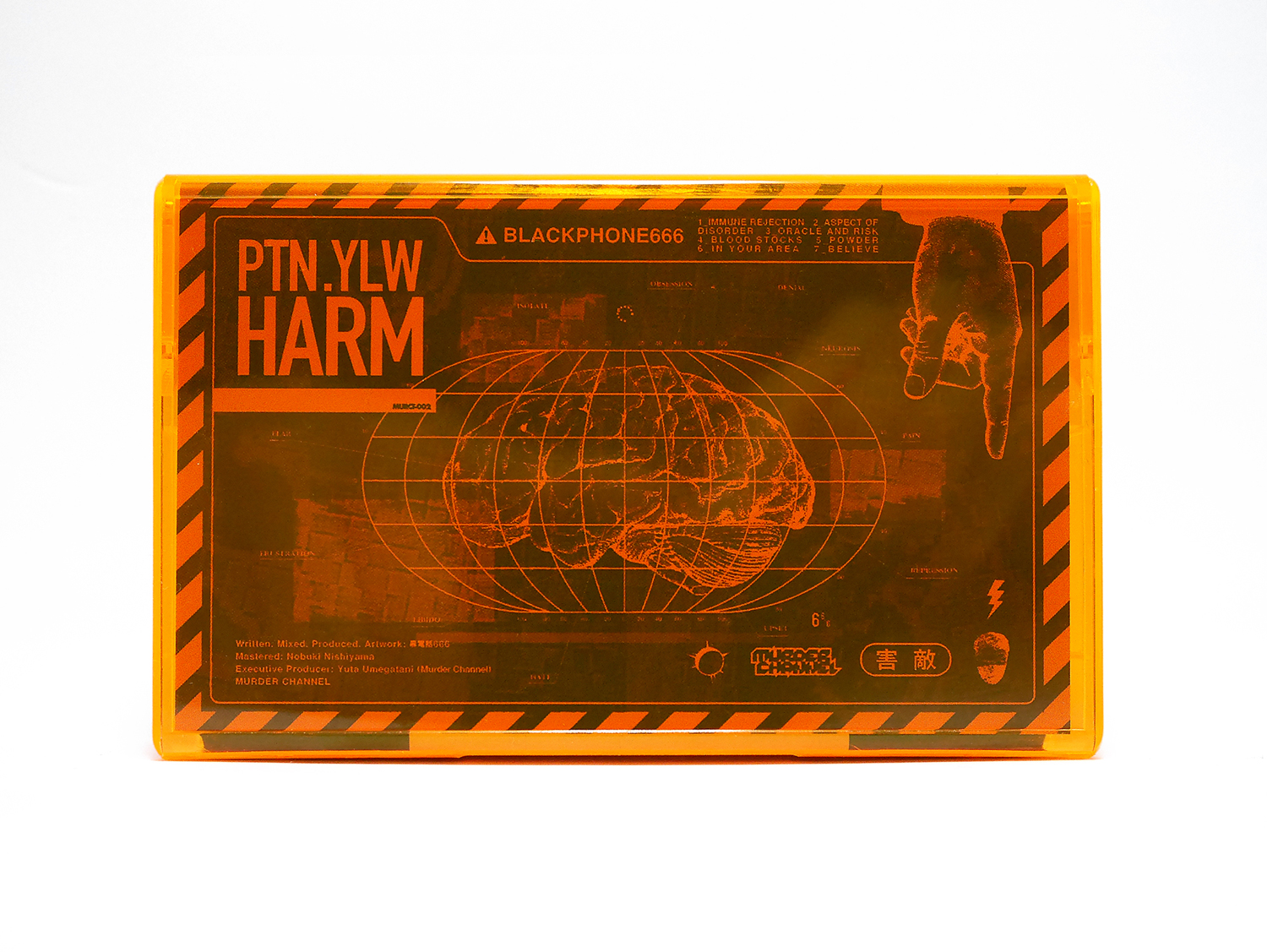 オーセンティックなジャパノイズにインスパイアされながらも、回転ダイヤル式電話機をアイコニックに用いたパフォーマンスのみならず、より器楽的かつ音響的なアプローチがノイズ・フィールドにおいて異彩を放つ黒電話666が、かねてより継続中のライヴ・レコーディング・シリーズ『DO HARSH』を挟み、2017年の流通作品『Accumulation』([…]dotsmark)、CD-R作品『3B LIVE ELECTRONICS』(2019)に続く新作『PTN.YLW / HARM』(MURCT-002)を梅ヶ谷雄太主宰レーベル「Murder Channel」とのダブルネームでリリース。カセットテープ(1,500円 + 税)とデジタル(650円 + 税)の2フォーマットが8月6日(金)に発売されます。