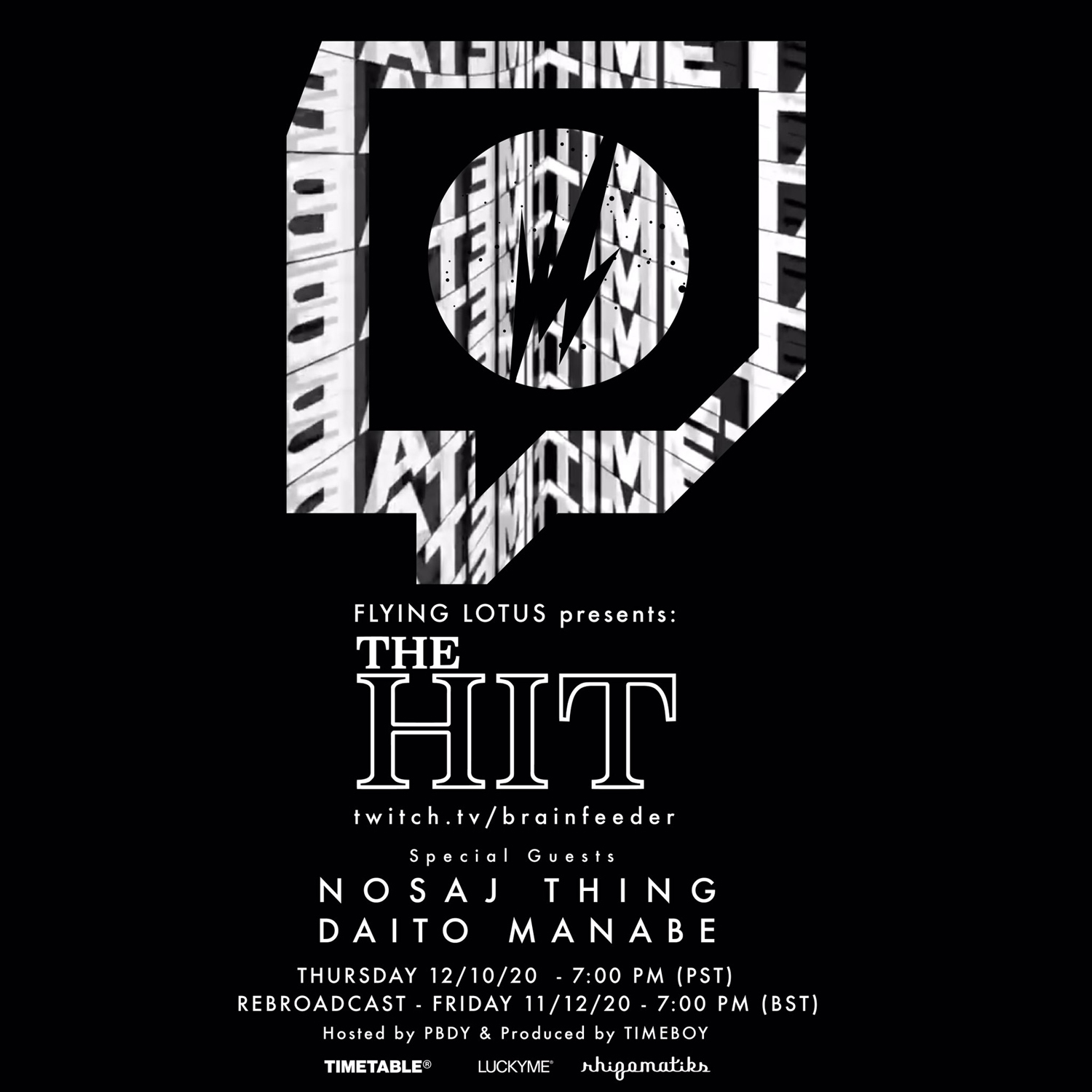 Flying Lotus主宰レーベル「Brainfeeder」が毎週木曜日 19:00 PST(金曜日 12:00 JST)にTwitchで開催中のストリーミング・イベント「Flying Lotus Presents The Hit」。Salami Rose Joe Louisが出演した12月4日の配信に続く同イベントの最新回が、12月11日(金)12:00 JSTより配信されます。