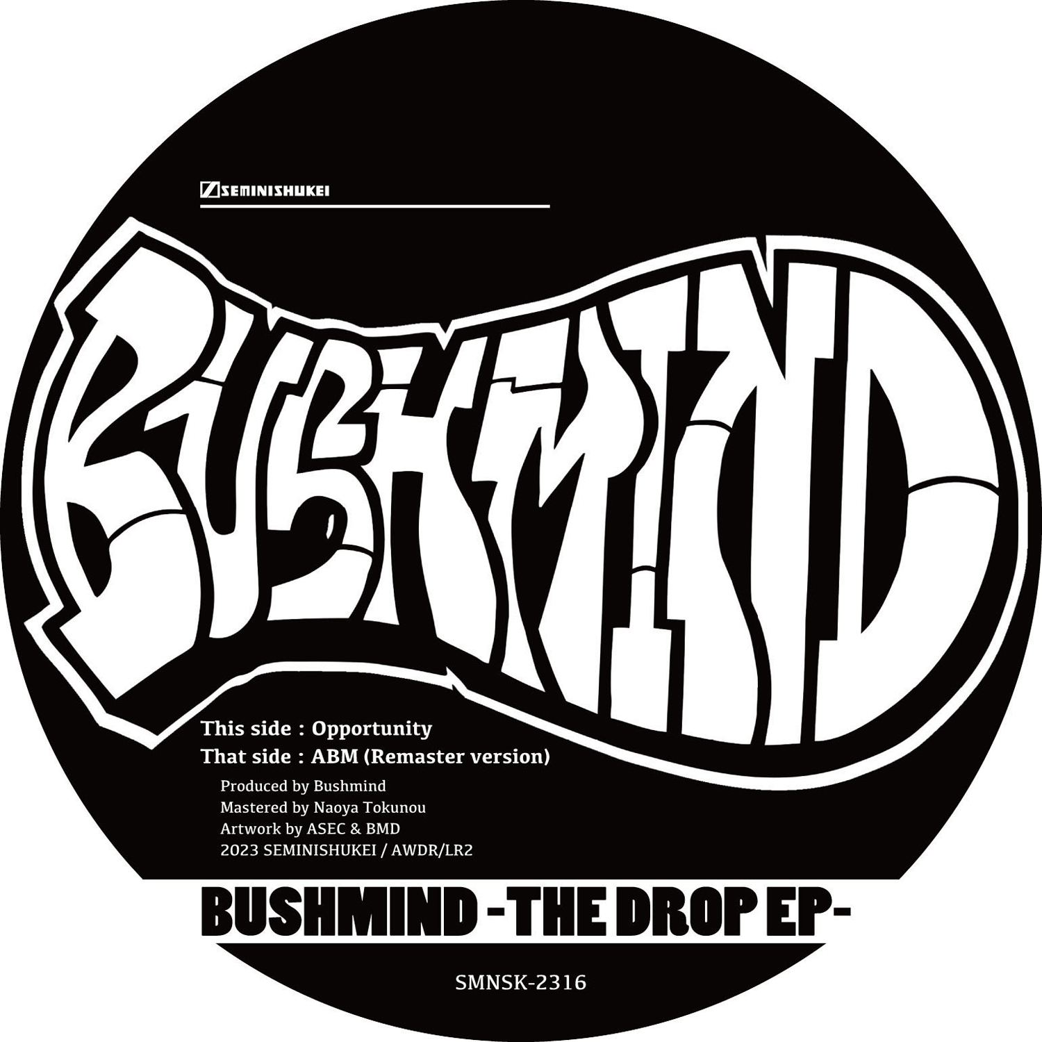 年間120もの現場でスピンするというトップDJとしてのみならず、あらゆるスタイルを横断してオリジナルのサイケデリアを創出するトラックメイカーとしても知られるBUSHMIND(Seminishukei)が、新作『The Drop EP』をリリース。5月24日(水)にデジタルおよび12"ヴァイナル(DDJB-91235 2,000円 + 税)での発売が予定されています。