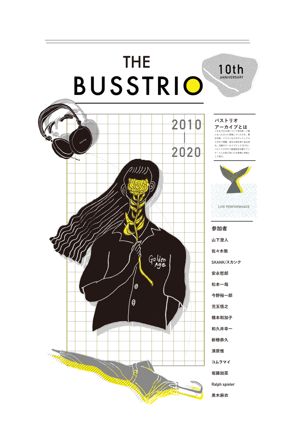 またバストリオは、10年に亘る活動を振り返るアーカイヴ本(タブロイド判)を制作中。佐々木 敦、山下澄人によるテキストや、縁深い面々からの寄稿、イラスト、写真などをコンパイルした同書は、ライヴ配信を視聴の上、オンラインでのアンケートに回答した視聴者を対象に進呈。