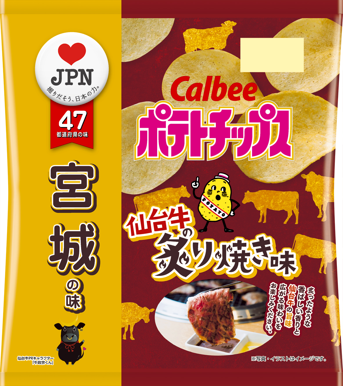 「カルビー株式会社」が、宮城県の名産品「仙台牛」の味わいを再現した『ポテトチップス 仙台牛の炙り焼き味』を東北6県および北海道、新潟、長野にて数量 / 期間限定で7月13日に発売。「カルビープラス」をはじめとする全国のカルビー・アンテナショップでも7月16日(木)より順次販売予定。