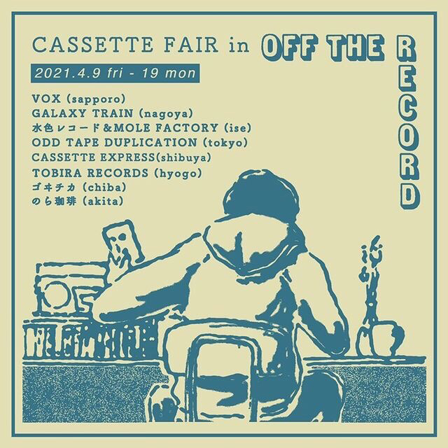 同フェアには、東京・渋谷「CASSETTE EXPRESS」、愛知・名古屋「galaxy train」、千葉・市原「ゴヰチカ」、三重・伊勢「水色レコード」「MOLE FACTORY」、秋田「のら珈琲」、東京「ODD TAPE DUPLICATION」、兵庫・加西「Tobira Records」、北海道・札幌「VOX」の9組が出店。4月11日(日)にbeeftannen(BLACK URBAN TAPES)、EGUCHI、fish(アコースティック・セット)、go kinsella、Ikalaser、永見エリ、nishio kazuoki、スーベニア(アコースティック・セット)が出演するオープニング・イベント、18日(日)にはKotolis、mishca(アコースティック・セット)、nakai、sitaq(アコースティック・セット)、summer of fan、umerin出演のクロージング・イベントも開催されます。