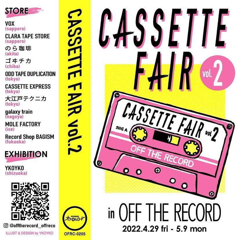 同イベントには、全国のカセットテープが出品。福岡・天神「Record Shop BAGISM」、東京・渋谷「CASSETTE EXPRESS」、北海道・札幌「CLARA TAPE STORE」、愛知・名古屋「galaxy train」、千葉・市原「ゴヰチカ」、三重・伊勢「MOLE FACTORY」、秋田・旭南「のら珈琲」、埼玉・戸田「ODD TAPE DUPLICATION」、東京「大江戸テクニカ」、北海道・札幌「VOX」の10店が参加するほか、フライヤー・アートを手がけたイラストレーター・YKOYKOによるエキシビションも予定されています。