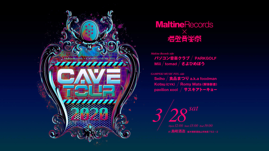 6月に第2回が開催される野外音楽フェスティヴァル「岩壁音楽祭」と、tomad主宰のネットレーベル「Maltine Records」が、コラボレーション・フェスティヴァル「CAVE TOUR 2020」を3月28日(土)に栃木県那須烏山市“どうくつ酒蔵”(島崎酒造)にて開催。同地で音楽フェスが開催されるのは今回が初。15年の歴史を持つMaltine Recordsは、今回が初の野外フェス開催です。