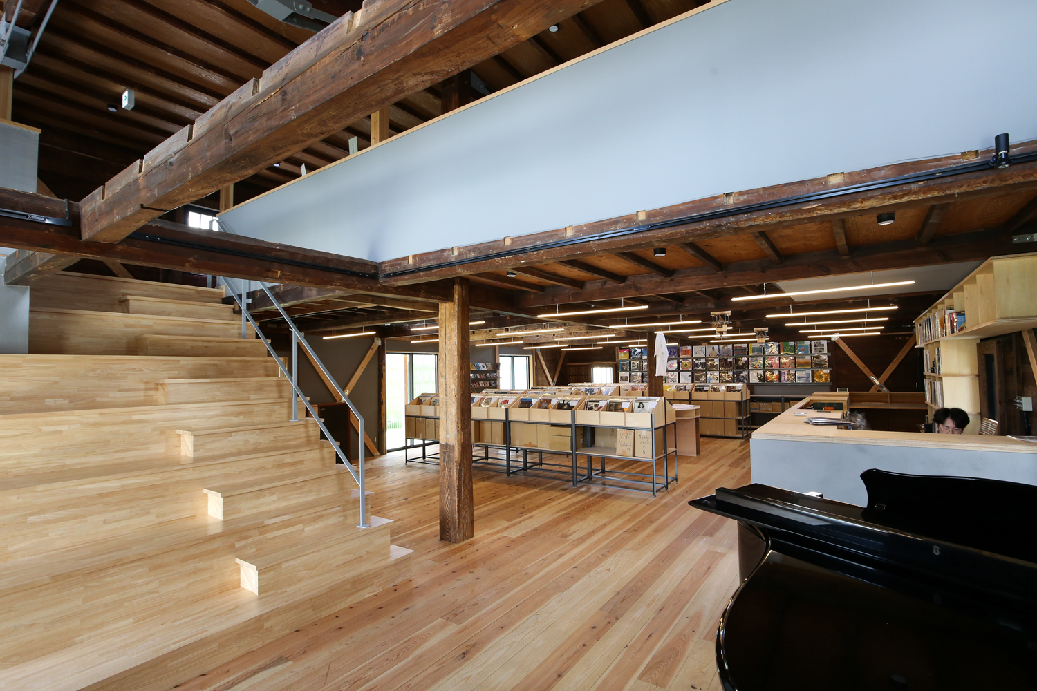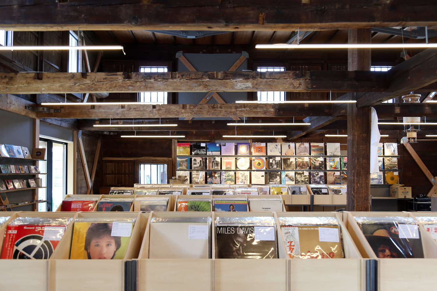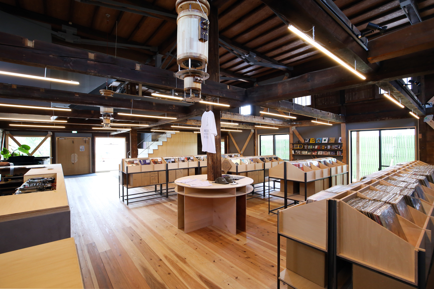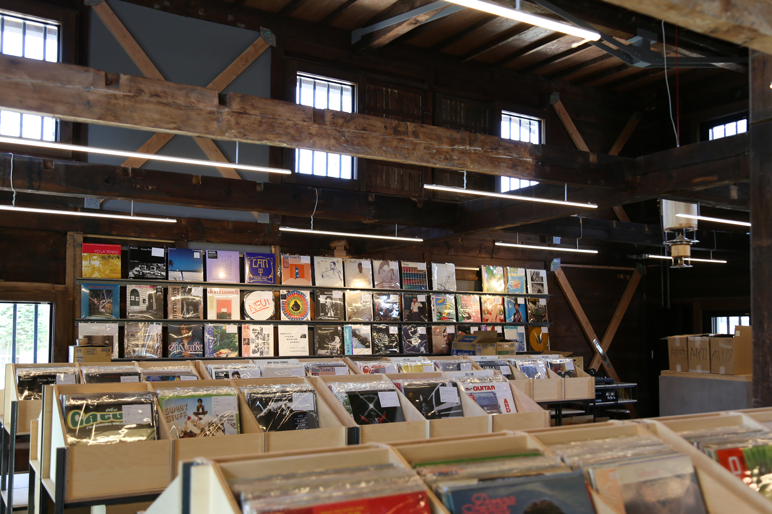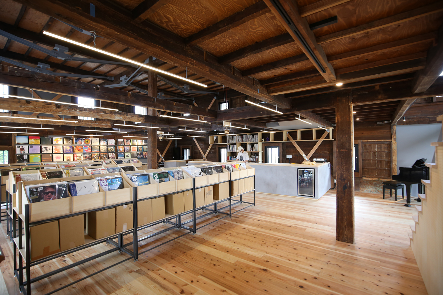 CELLAR RECORDSが入居する建物は、明治から昭和初期にかけて製糸業の中心地として栄えた岡谷市内に現存する希少な繭蔵。製糸業の衰退後は倉庫兼事務所として利用されていたものの、近代化産業遺産の保存と活用のために大規模に改修され、3階建てだった建物の2階部分を撤去してエントランス部分が吹き抜けの2階建てとなっています。店内にはグランド・ピアノが設置され、今後イベントなども開催予定とのこと。オンライン・ショップも開設予定。