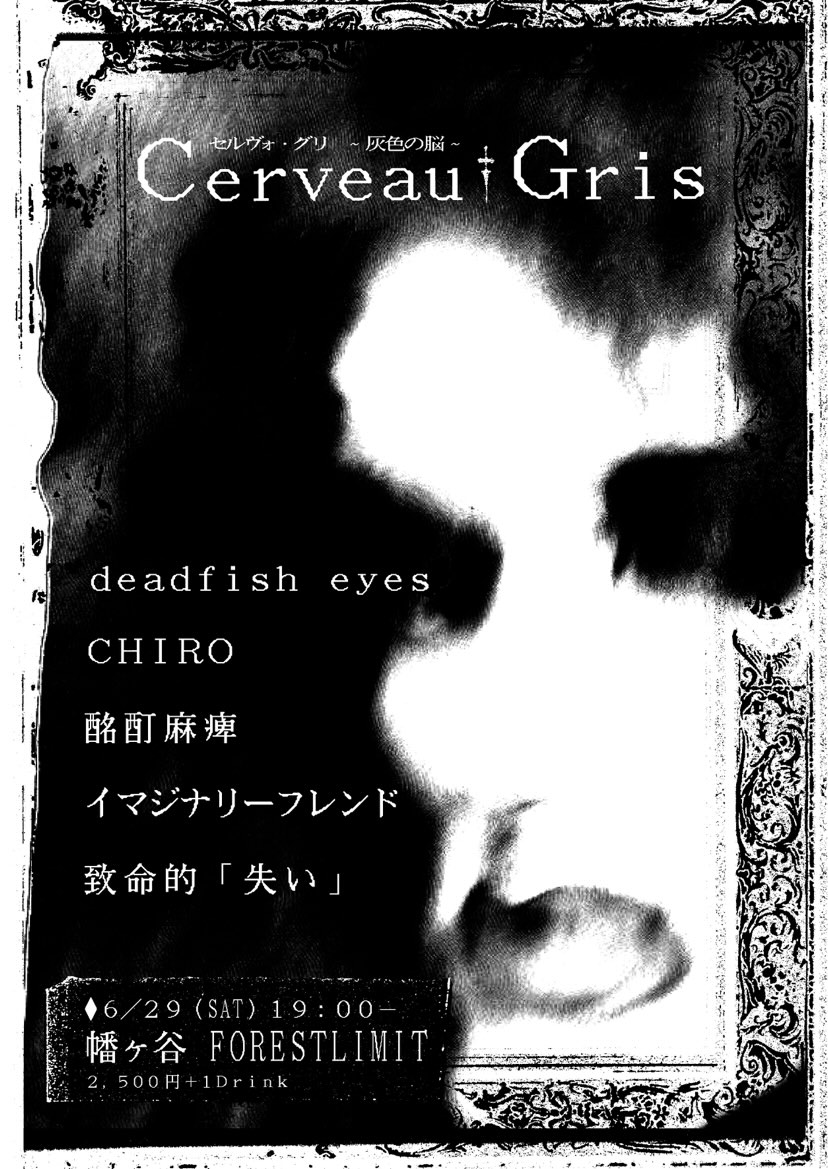 昨年末に東京・幡ヶ谷 Forestlimitで開催されたライヴ・イベント「Sádi CO. IN TOKYO」にてデビュー・パフォーマンスを敢行し、会場を震撼させた新バンド・致命的「失い」(真秋 + 鈴 + 実夢)が、初の自主企画「Cerveau†Gris – 果実を放棄した灰色の脳...」を6月29日(土)にForestlimitにて開催。