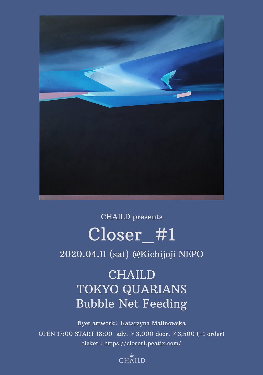 また、初の自主企画ライヴ「Closer_#1」も4月11日(土)に東京・吉祥寺 NEPOにて開催決定。CHAILDに加え、Bubble Net Feeding、TOKYO QUARIANSを迎えての3マンが予定されています。