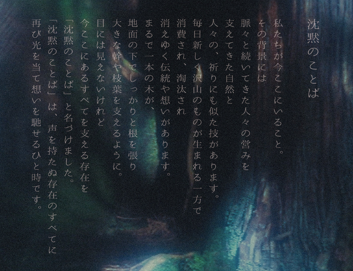 『沈黙のことば』は”声を持たぬものへ祈るひと時”を共有するための時間です。