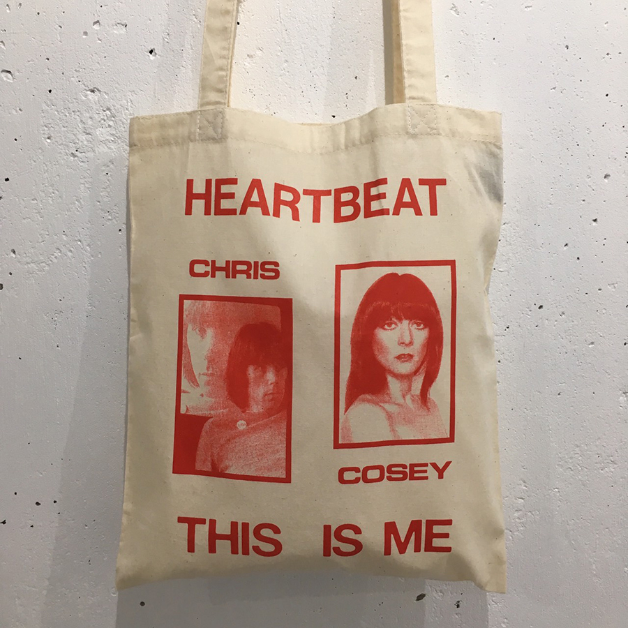 オフィシャル・ライセンス・ライン“VIVA Originals”のTHE MONOCHROME SETに続く第2弾となるCHRIS & COSEYは、Tシャツ3種とトートバッグの4アイテム展開。Tシャツはそれぞれ、1981年の1stアルバム『Heartbeat』(Rough Trade)、CABARET VOLTAIRE主宰「Doublevision」からCTI名義で発表されたVHS作品『Elemental 7』(1983)、Annie Lennox + Dave Stewart(EURYTHMICS)をフィーチャーした1985年の12″『Sweet Surprise』(Rough Trade)がモチーフ。トートバッグには、『Heartbeat』収録曲から“This Is Me”の文字もあしらわれています。デザインはいずれも、CHRIS & COSEY作品に造詣の深いCARREのMATERIALが担当。CHRIS & COSEYは「All look wonderful... very nice indeed」とコメントしているとのこと。全アイテム、追加生産なし / 数量限定での販売です。