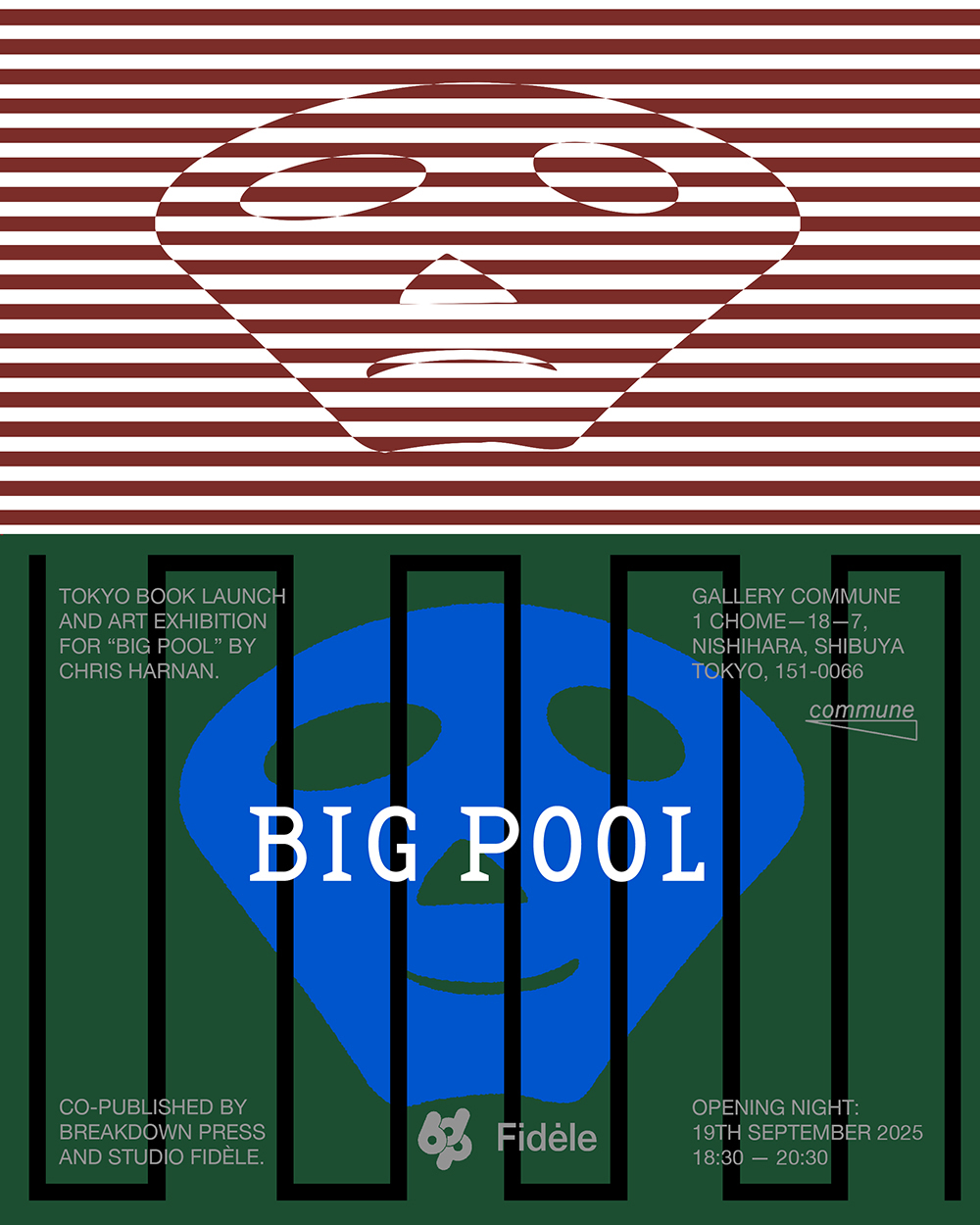 、現在はオーストラリア・シドニーを拠点に活動し、近年はbo en『Pale Machine 2』(2023)のカヴァー・アートも話題となったイギリス出身の美術家 / イラストレーター・Chris Harnanが、ソロ・エキシビション「Tokyo Book Launch & Art Exhibition For "BIG POOL"」を東京・幡ヶ谷 gallery communeにて9月19日(金)から10月4日(土)まで開催。