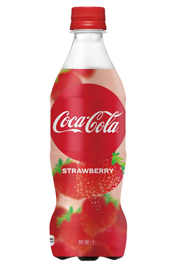 「コカ・コーラ ストロベリー」は、「コカ・コーラ」ならではのおいしさに、旬のフルーツ・フレイヴァを持ち合わせた世界初の新製品。視認性の高いフルシュリンク・ラベルを採用したパッケージは、ベイビーピンク・ベースにみずみずしいイチゴのイラストをあしらったデザインとなっています。