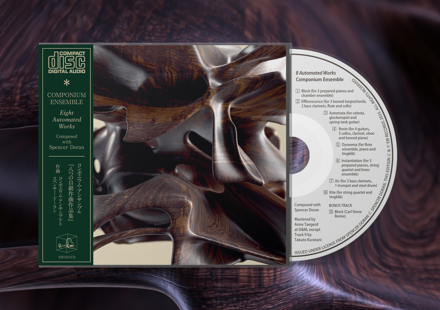米ポートランドORを拠点に活動し、Ryan Carlileと組んだVISIBLE CLOAKSとしてのみならずソロでも活躍するSpencer Doranの“不確定室内楽”プロジェクトComponium Ensembleが、初のフル・アルバム『8 Auto Mated Works 八つの自動作曲作品集』を10月17日(金)に「EM Records」からリリース。10"ヴァイナル / CD / デジタルの3フォーマットで発売されます。CDのみCarl Stoneによるリミックス・トラックを追加収録。
