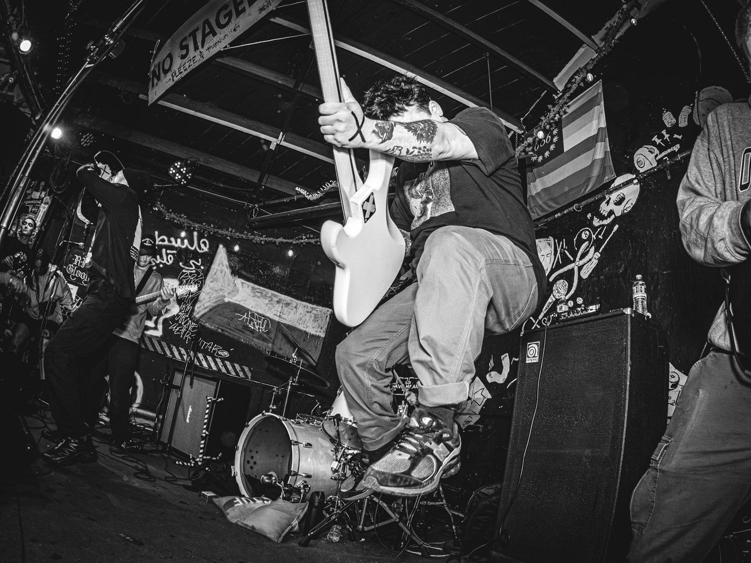「HOLY DOSEは、CONTENTIONのメンバー3人(Bayly、D'Angelo、僕)がやっているギター・オリエンテッドな90sオルトロック・ウォーシップなプロジェクトだよ。最近『Sharp Decline』(New Morality Zine)っていうレコードを出したばかり。CONTENTIONとは違っていて良い気分転換になるし、回し蹴りよりステージ・ダイヴ向けのサウンドだけど、エネルギーは変わらないよ。THE ARRIVAL NOTEは、Josh、Bayly、D'Angeloがやっているバンドで、TEXAS IS THE REASON、THE PROMISE RING、BRAIDみたいなタイプのエモだよ」