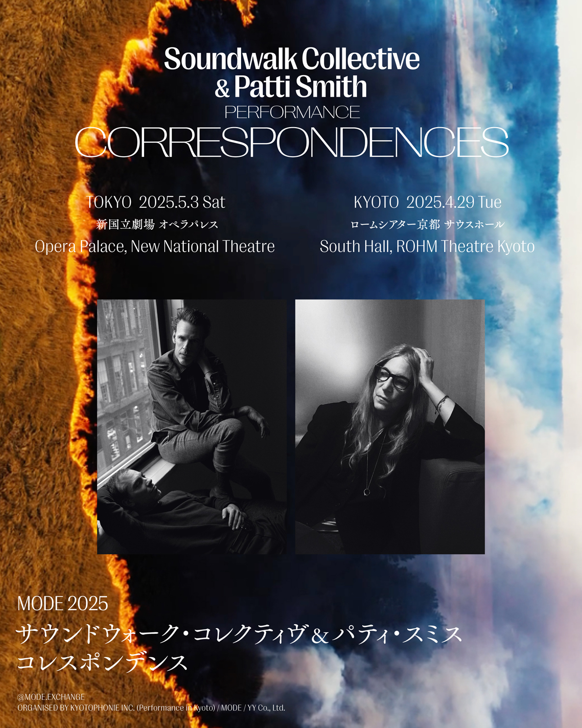 会期中には「CORRESPONDENCES」のライヴ公演も開催。4月29日(火・祝)に京都・ロームシアター京都 サウスホールにて昼夜2公演の「KYOTOPHONIE in collaboration with MODE」、5月3日(土・祝)には東京・初台 新国立劇場 オペラパレスにて「MODE 2025」の全3公演が決定しています。チケットは残り僅か(東京公演は予定枚数終了)。