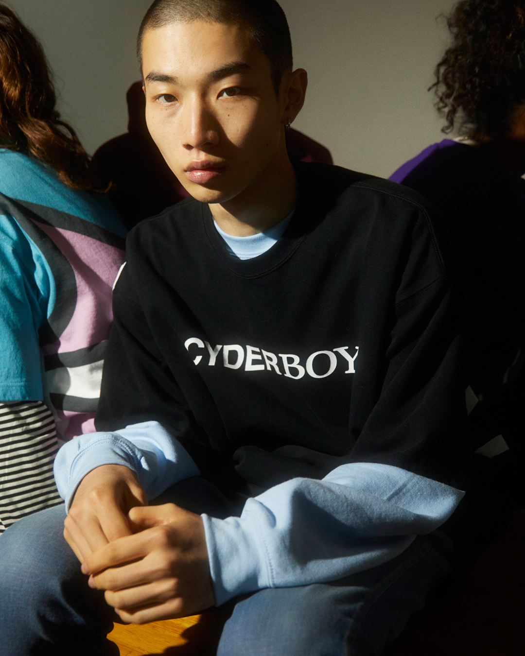 “Modern Mainstream(新主流派)”をコンセプトに、“とげのないやさしいパンクスのカタチを目指す”という「CYDERBOY」には、アイコンをデザイニングしたストリート・ウェアをメインに、7種のアイテムを展開。田口 陵(CIDER INC.)ディレクションのブランド・ローンチのCMも公開されています。音楽はKASHIF(Pan Pacific Playa)、マスタリングはDorianが担当。