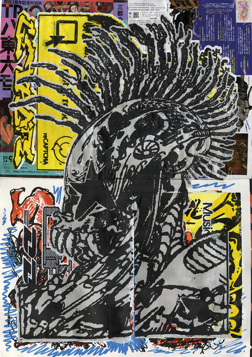 日本では2024年に京都・烏丸御池 Ace Hotel Kyotoでの滞在制作を経て開催された「CHARACTER BUILDING」以来約1年半ぶりの個展となる「Graphic Detail」では、ドローイング、デジタル・イメージ、ペインティング、スクリーン・プリントなどの手法による作品を展示。アパレル・ブランド「Edwin Supply」とコラボレートしたアパレルや、新作ジンも販売されています。