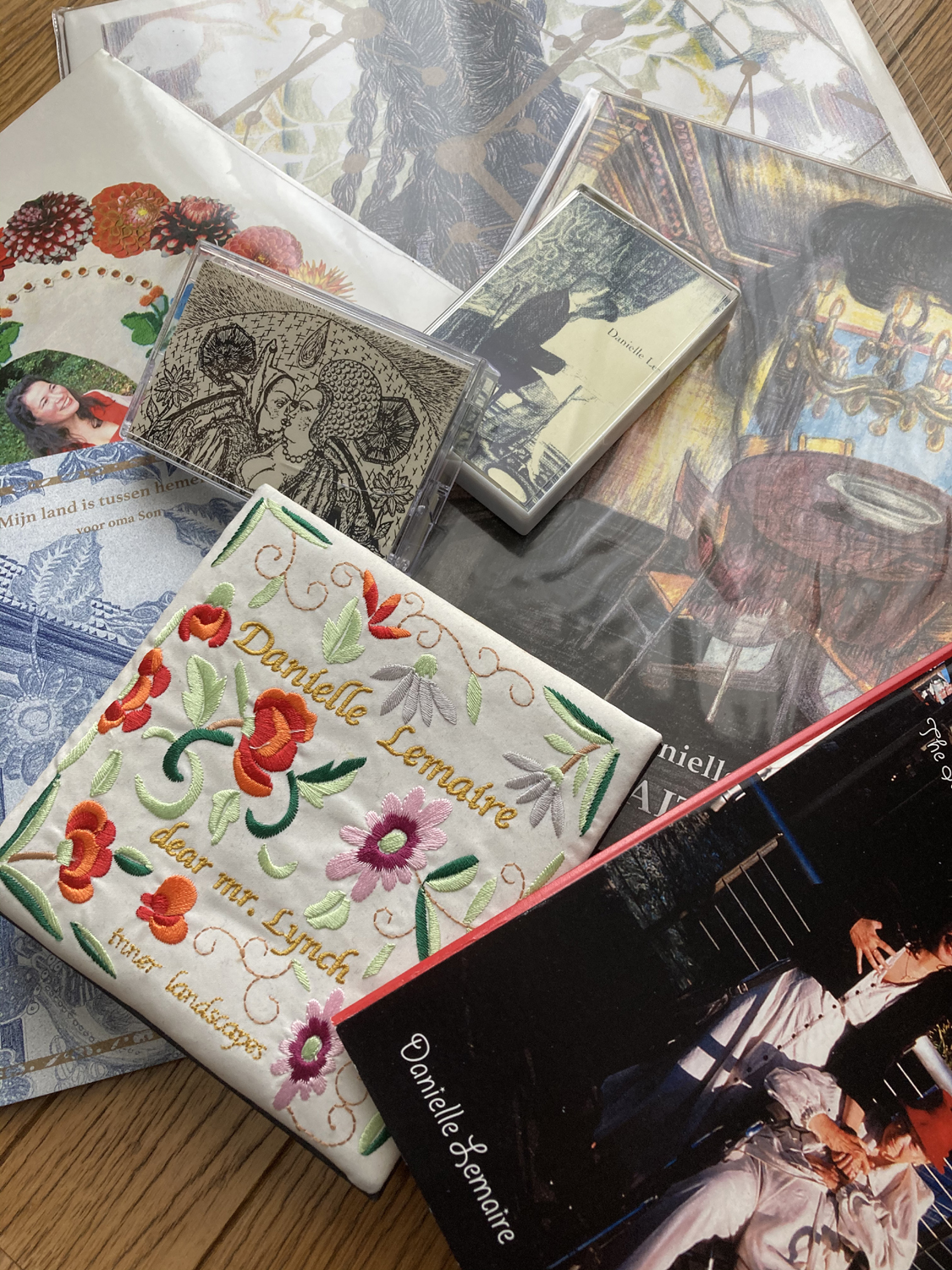 販売されているのは、いずれもLemaire自身が主宰するレーベル「Inner Landscapes」から発表されたもの。ソロ作品のみならず、“JaDa”名義を含むパートナー・Jan Van Den Dobbelsteenとのコラボレート作品や、2002年に逝去したLucia Pamelaとの交流をテキスト、ヴィジュアルと音で綴る冊子 + CD作品『Lucia Pamela: The Story of a Document Humain』もラインナップしています。カセットテープ・フォーマットの作品はすでにソールドアウト。