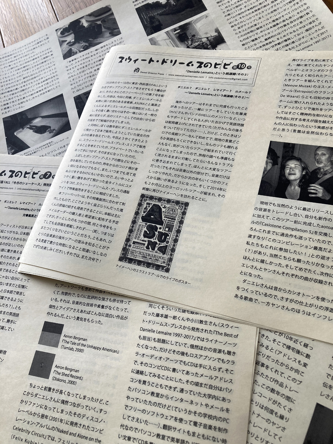 なお、「Sweet Dreams Press Store」での購入者には、フリーペーパー『スウィート・ドリームスのヒビ』を用意。2017年にLemaireとのカップリング・ジャパン・ツアーを開催した嵐 直之 aka ASUNAによる回想記が掲載されています。