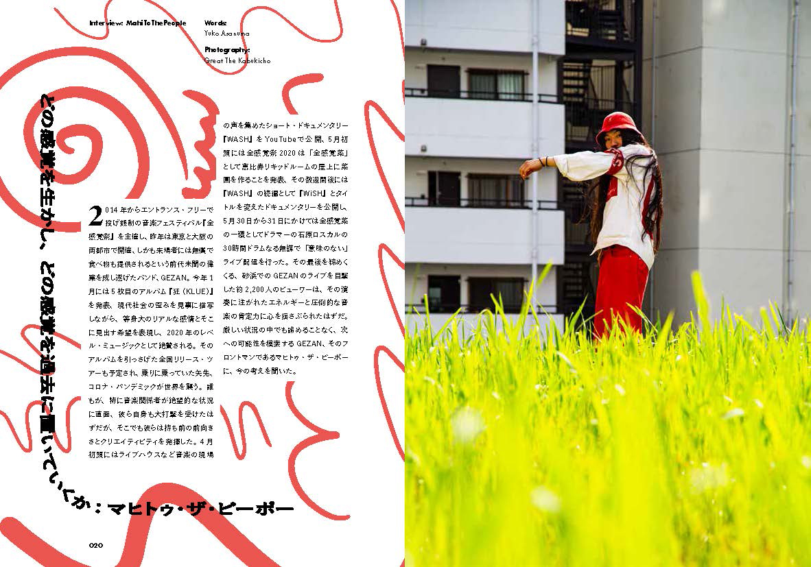 創刊号とのページ比3倍、全196ページのヴォリュームとなっている同号は、コロナ禍においてカルチャーを発信する人々を記録したスペシャル・イシュー。Mars89、マヒトゥ・ザ・ピーポー(GEZAN)などのインタビュー記事に加え、荏開津広、佐久間裕美子、Seiho、草下シンヤらが寄稿。編集は二宮慶介と高岡謙太郎。アート・ディレクションは石黒景太、ブック・デザインは石黒景太と高森崇史が担当しています。ロゴ・デザインはGUCCIMAZE、カヴァー・フォトはグレート・ザ・歌舞伎町によるもの。