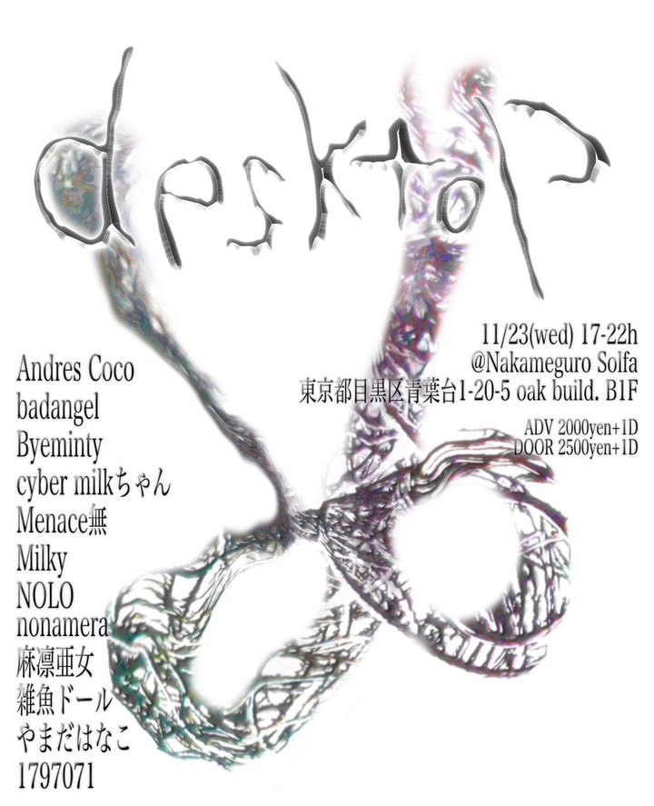 今夏大阪にてスタートし、女性アーティストを中心とした現場を繰り広げてきたパーティ「desktop」が、VMO主催「世紀末」とコラボレートした10月の第3回に続く第4回を11月23日(水・祝)に東京・中目黒 solfaにて開催。当日に先駆け、SoundCloudおよびYouTubeでは、出演陣のトラックをコンパイルしたプレイリストが公開されています。
