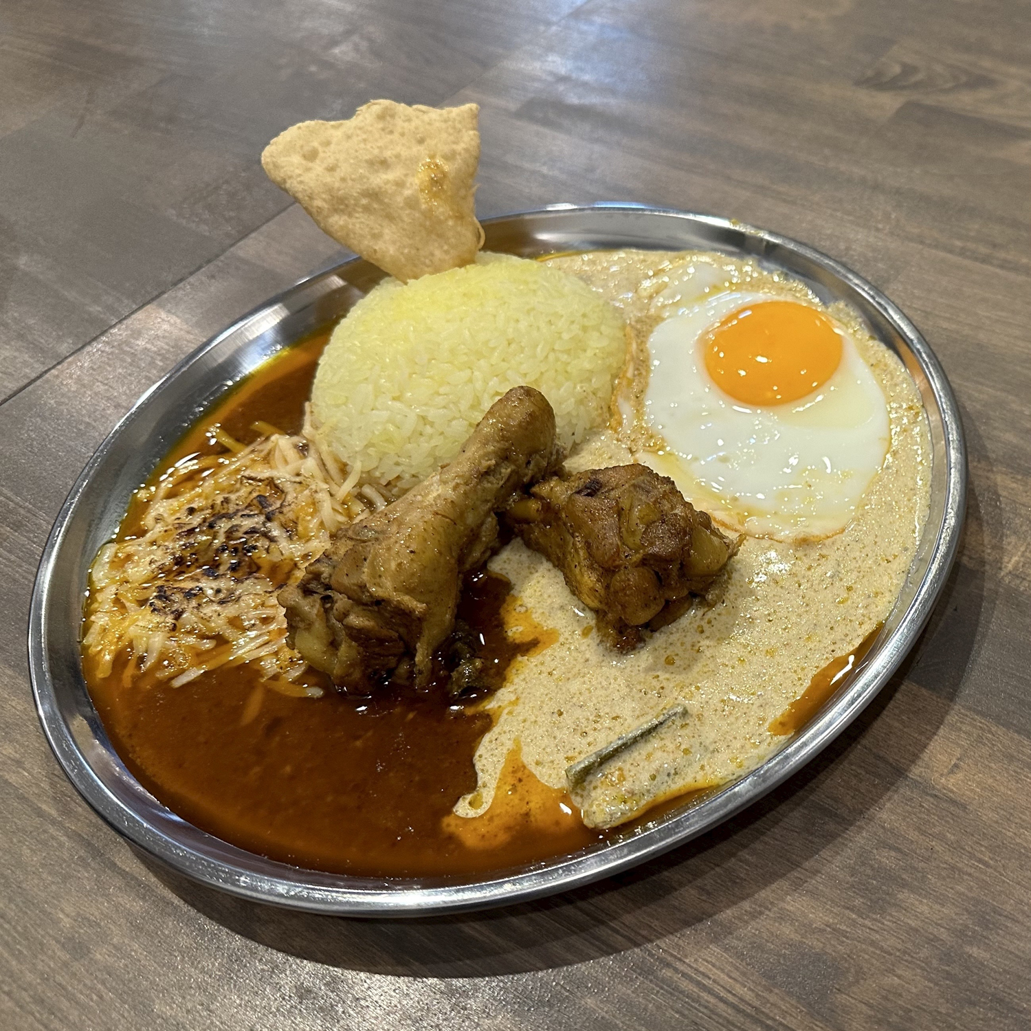 そして肝心の味は?当然の如く辛い。しかしそれ以上に旨味に圧倒された。日本の欧風カレーしか食べたことがない人からすると、とんでもなくスパイスの効いた激辛料理と感じるかもしれないが、このスパイスと旨味の深さと辛さが織りなす世界は一度味わえば虜になる。トッピングのライムピクルスも他では味わえない爽やかさと酸味がブレンドされたもので、カレーと混ぜると全く違う世界が広がるのでおすすめだ。辛さがしっかりありながら、食後のダメージが全くないので(個人差があるので参考までに)、辛いものが得意でない私でも心配無用の不思議なカレーだ。それでもまだ辛さが先行するというかたには、チーズや目玉焼きのトッピングも可能(両方のフルトッピングもあり)。