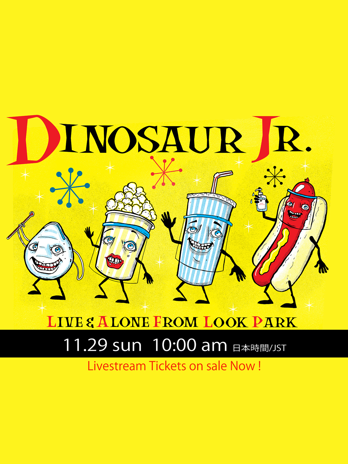 今年はAmazon Prime Videoオリジナル映画『I’ll Be Around』(Mike Cuenca監督 | 日本未配信)へのJ Mascis出演が話題となっているDINOSAUR JR.(J Mascis + Lou Barlow + Murph)が、オンライン・ライヴ「Live & Alone From Look Park」を開催。11月29日(日)10:00(JST)からの全世界同時配信が決定しています。