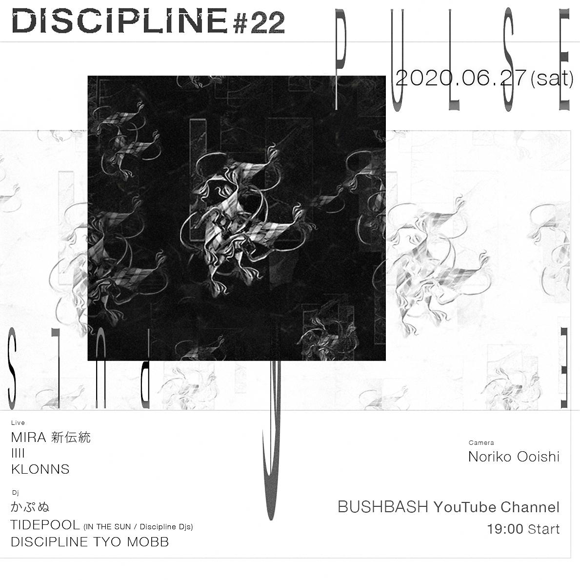 毎月第4土曜に東京・小岩 BUSHBASHにて開催中のレギュラー・パーティを5月に初めてライヴ配信スタイルで開催した「DISCIPLINE」コレクティヴが、6月27日(土)にオンライン・パーティ第2弾「Discipline #22 : PULSE」を開催。19:00よりBUSHBASH YouTube Channelでの配信が決定しています。